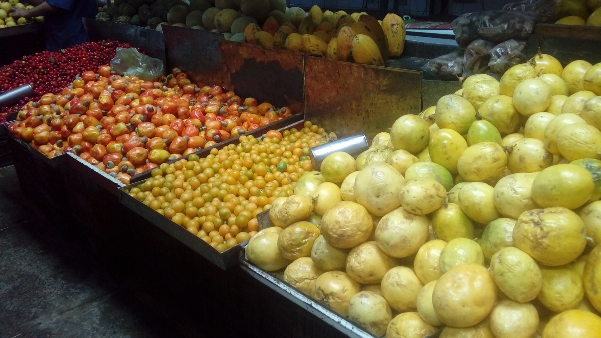 Then I got in and took a general walk past the fruit stands with great variety, especially the local ones such as cajá, cashew, coconut, acerola, guava, passion fruit.