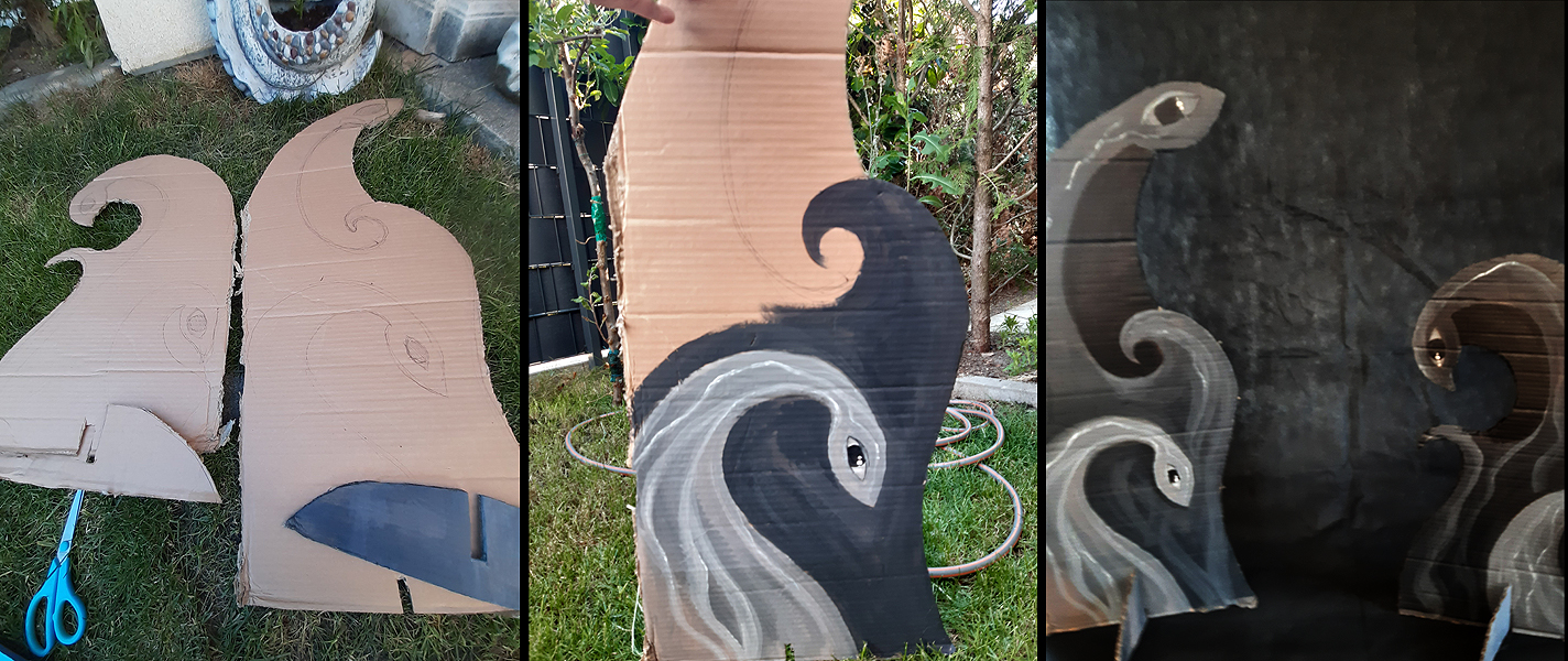 For the background I cut figures out of cardboard and painted them with acrylic paint. After all, you have to use the the tiny rest of the free time that you have with two children wisely :)
