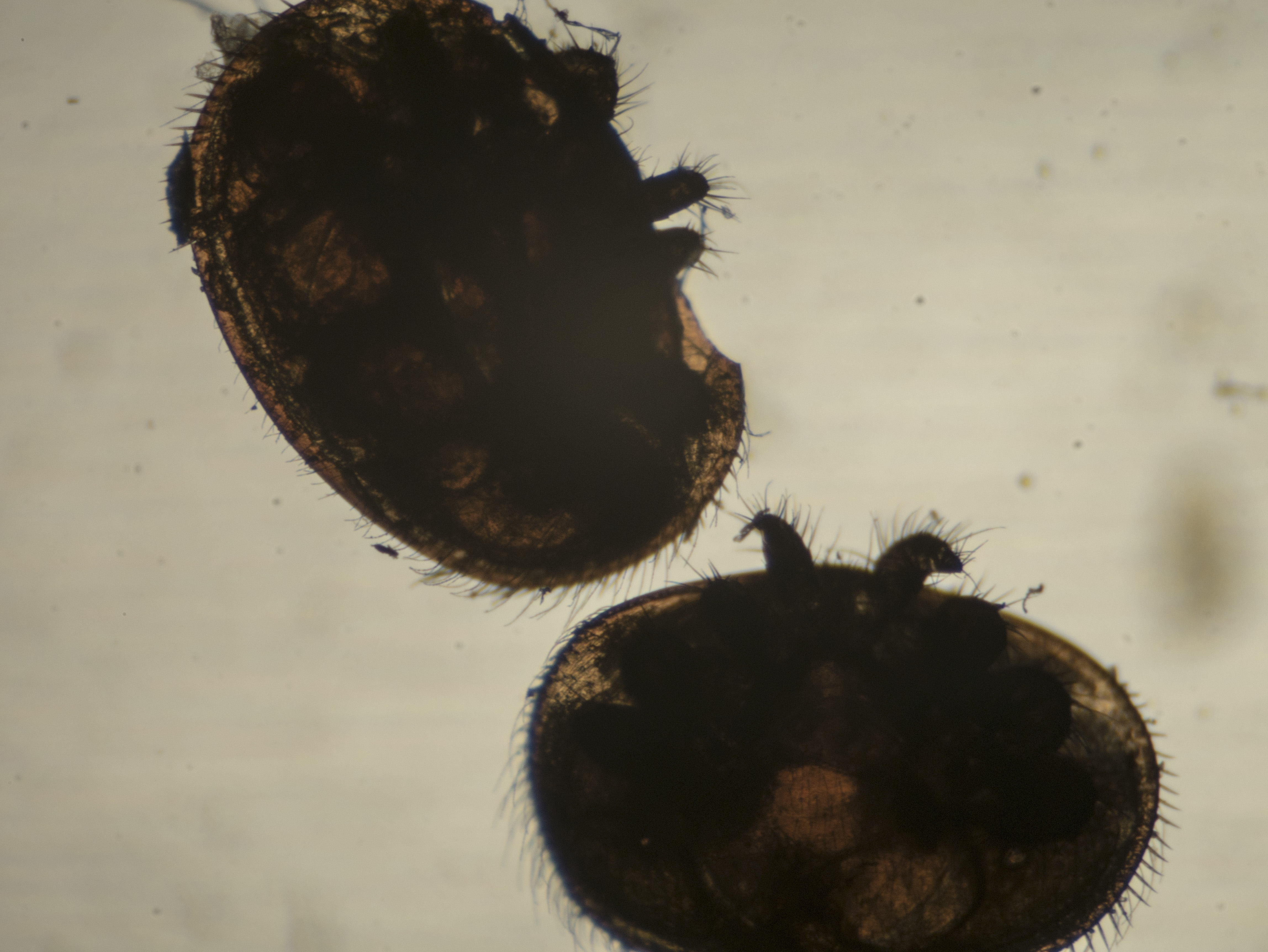 Durante la giornata di ieri ho prelevato alcune varroe dai fondi dei cassetti delle arnie, cosi da poterle vedere da vicino.