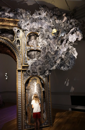 No Spectators is a huge installation called Temple. There are small wood tablets there for people to write on and leave it there.