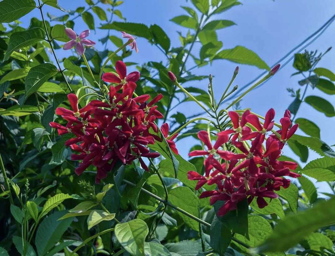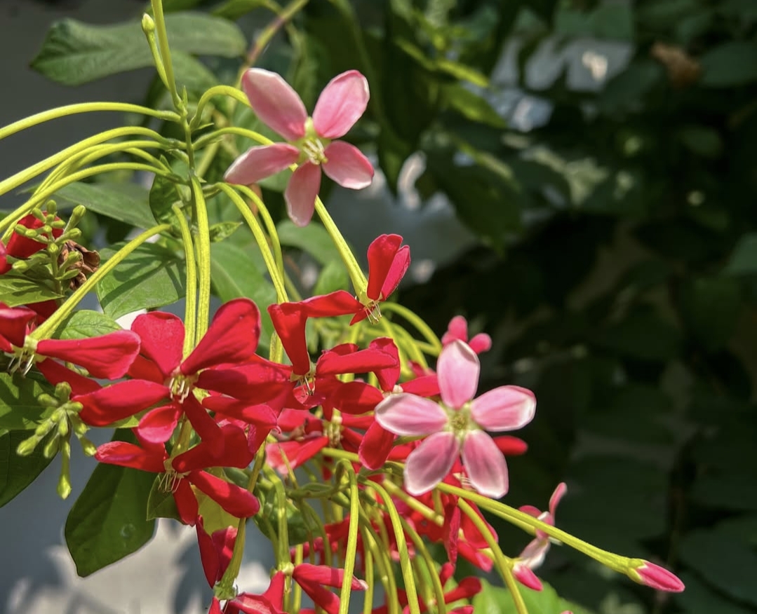 The vine itself is generous and full of life. It doesn’t grow timidly; it stretches, climbs, and embraces its surroundings, wrapping itself around fences, trellises, and walls. There’s something deeply human in that reaching—an instinct to connect, to find support, to grow beyond boundaries. The Rangoon creeper doesn’t stand alone; it becomes part of a larger story, intertwining its beauty with the world around it.