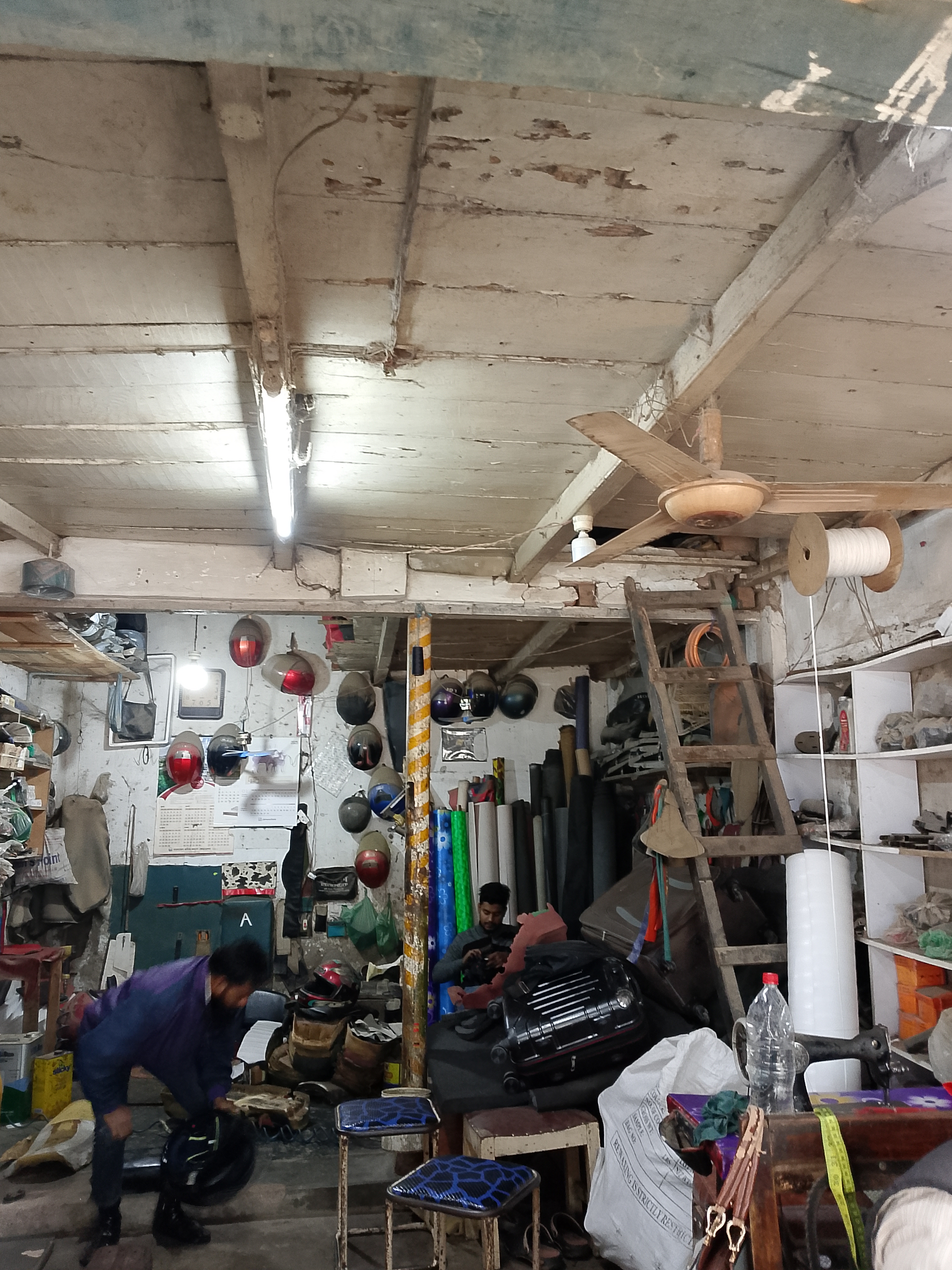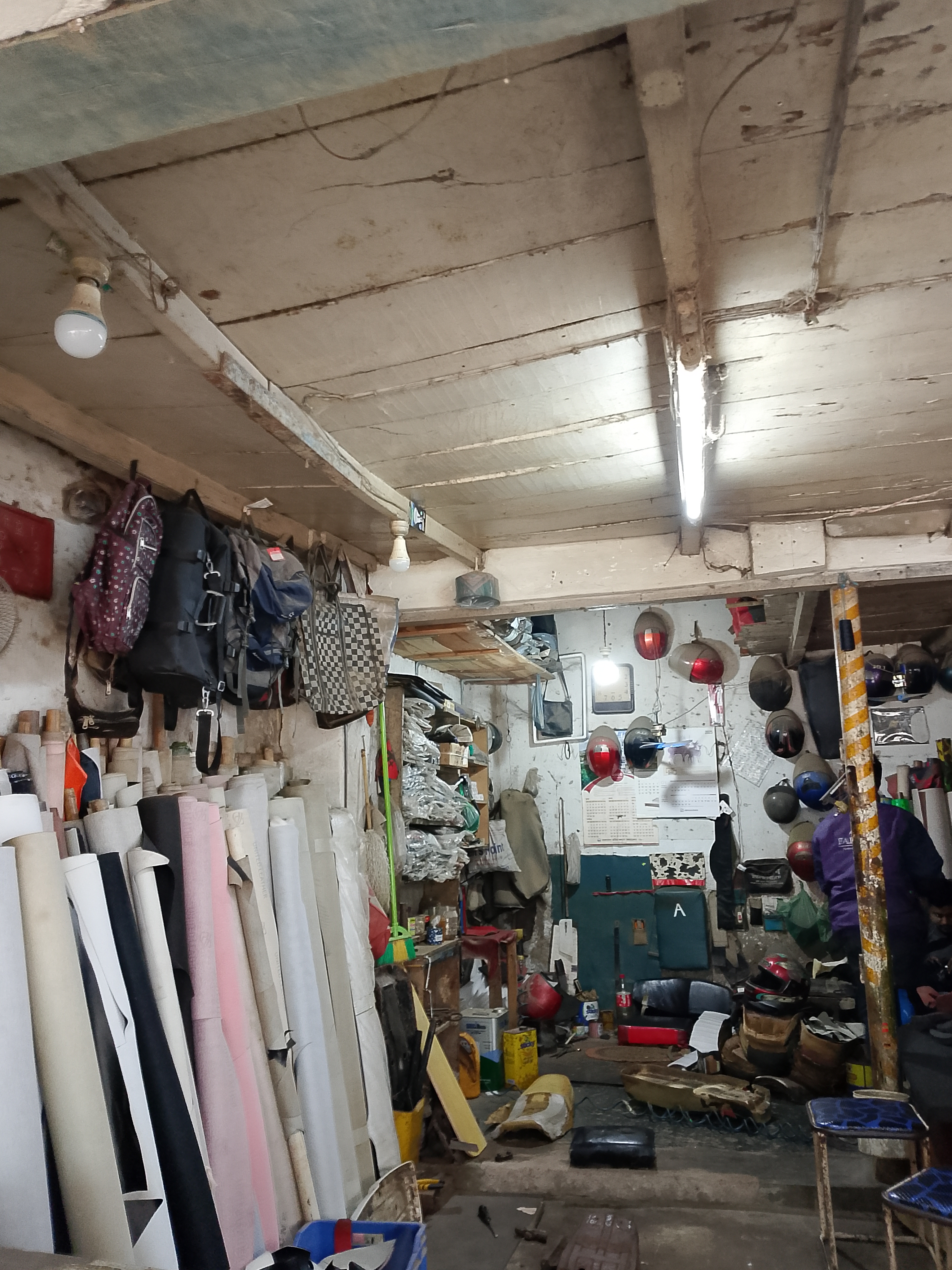 My friend took a helmet to ride a bike, but after wearing it, he found it very tight because it was new. As a result, when he wore it on his head, it felt uncomfortable, and he couldn't enjoy riding the bike. So, he said it needs to be shortened a bit. We searched in many shops but couldn't find it. Later, someone showed us a shop, and we went there and told them that we needed it shortened. The shopkeeper said, "Okay, give it to me, come back tomorrow or the day after to pick it up." We agreed to come the next day, and when we went there, we saw that some work was still pending. While they were working on the helmet, we were standing in front of the shop. At that time, I took a few pictures of the shop, and I am sharing those pictures with you.