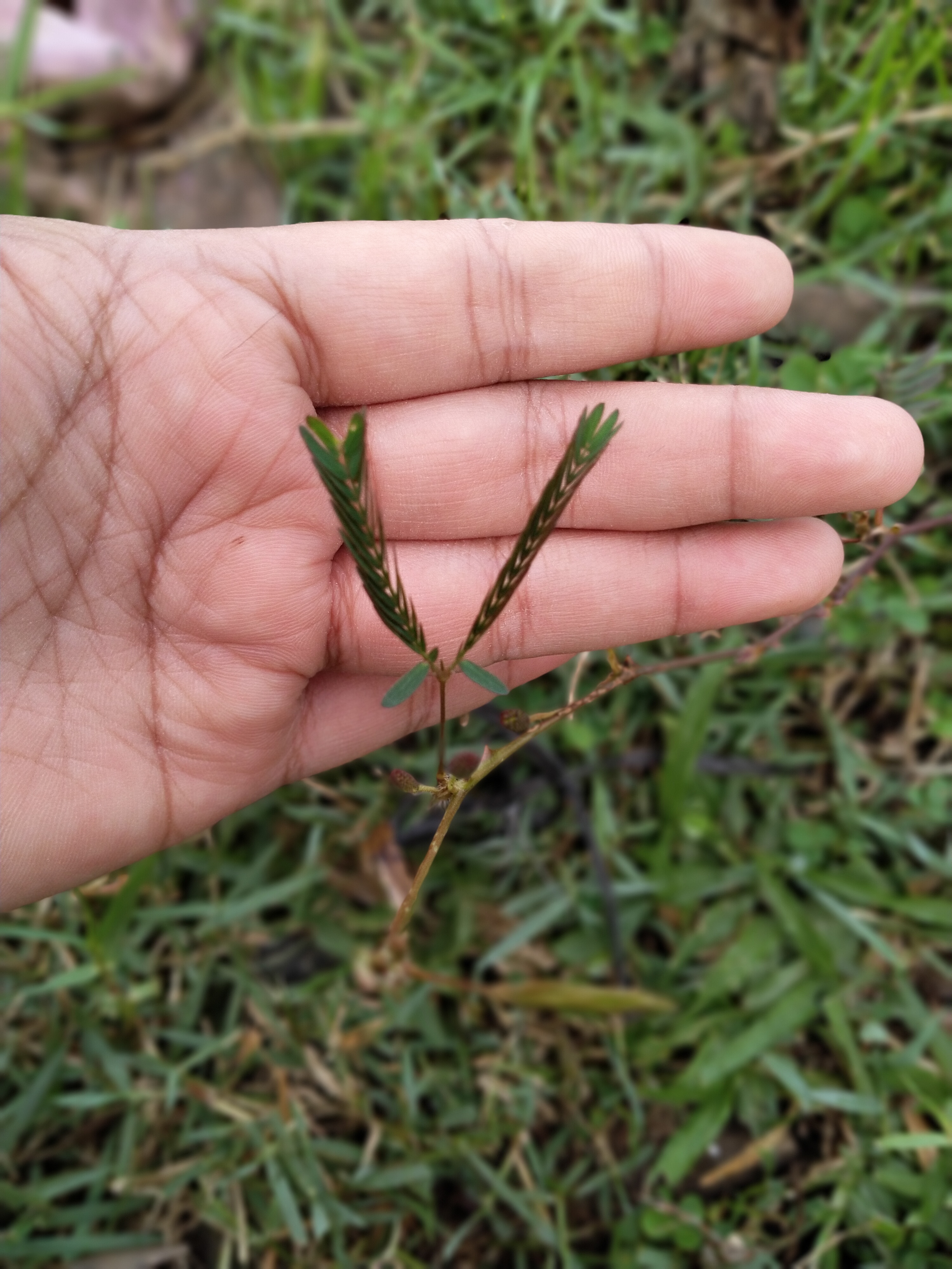 Shy daughter (Mimosa pudica Linn) is synonymous with its leaves that "fall asleep" or bud when touched. The leaves are small, but neatly arranged in a compound with the location of the leaves facing each other.