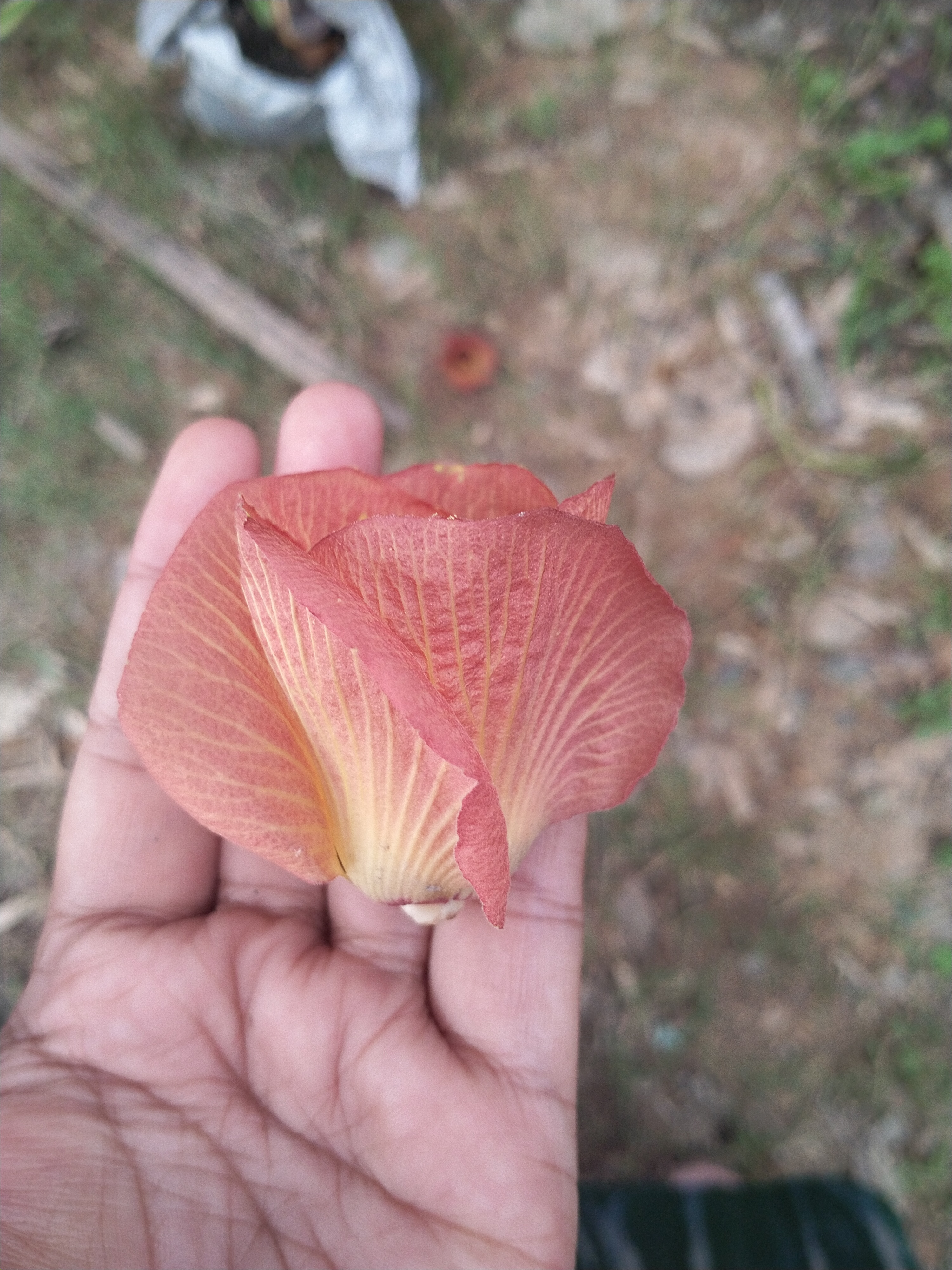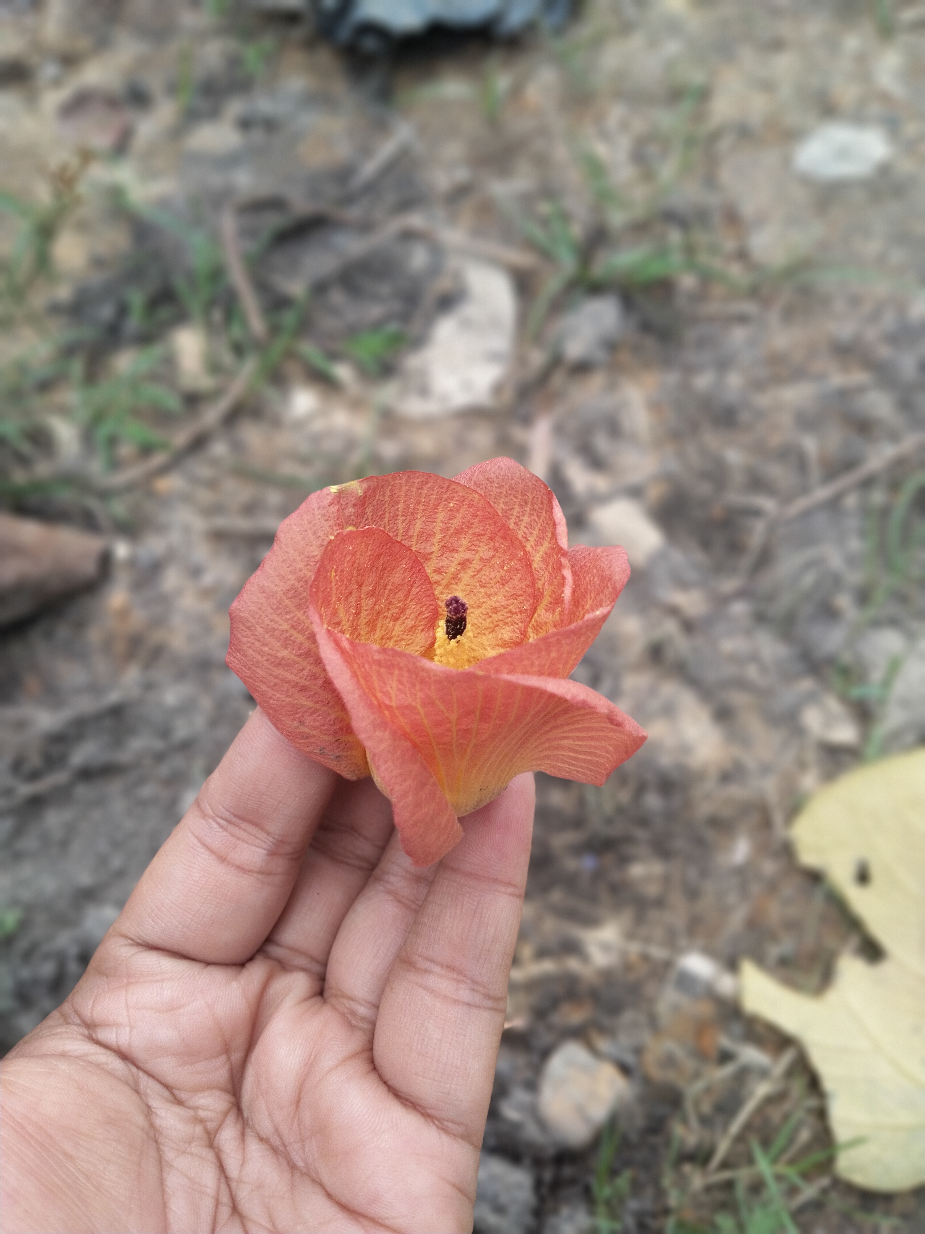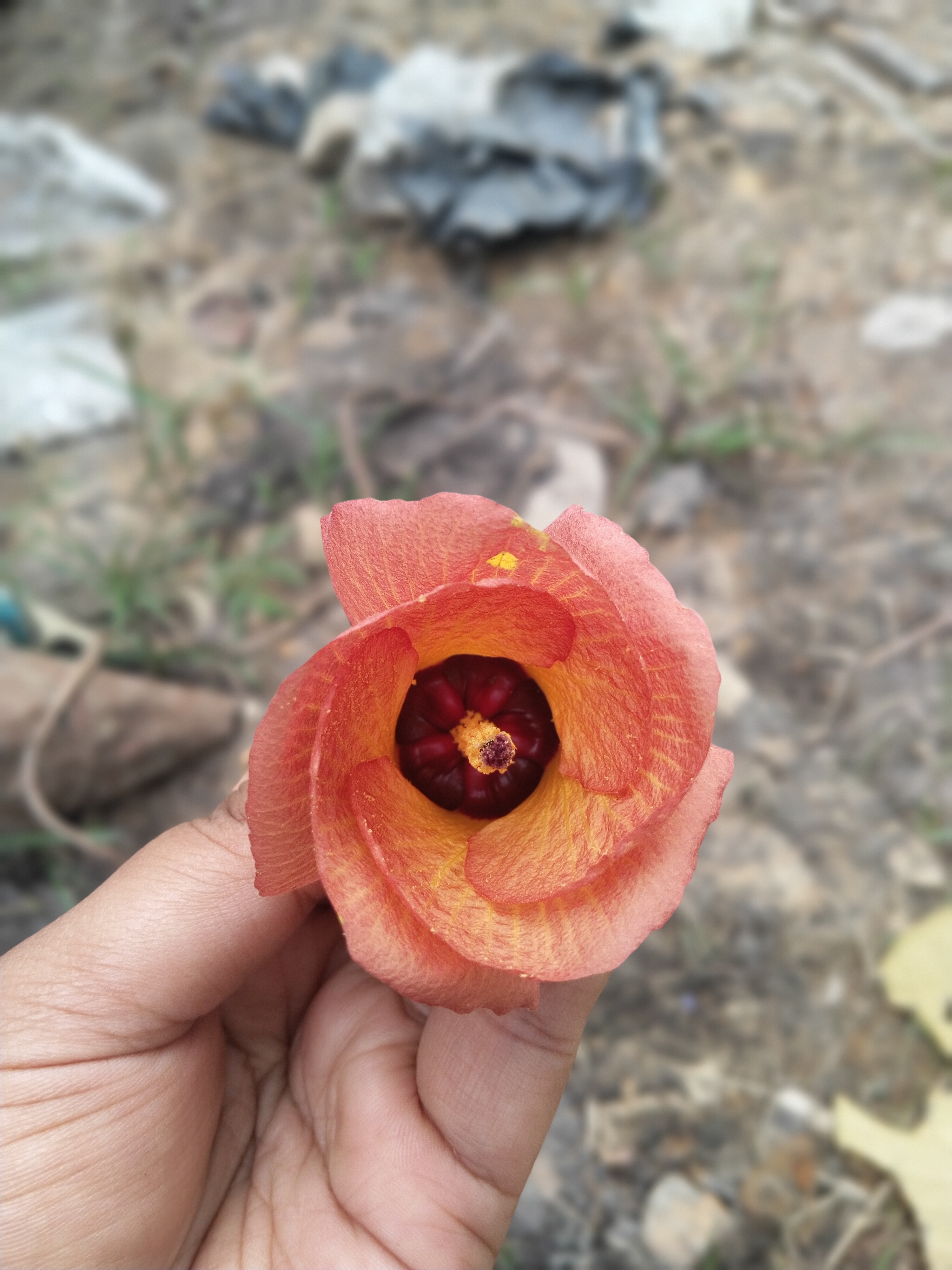 This flower blooms in the morning with a yellow crown, during the day the color will change to orange like this.