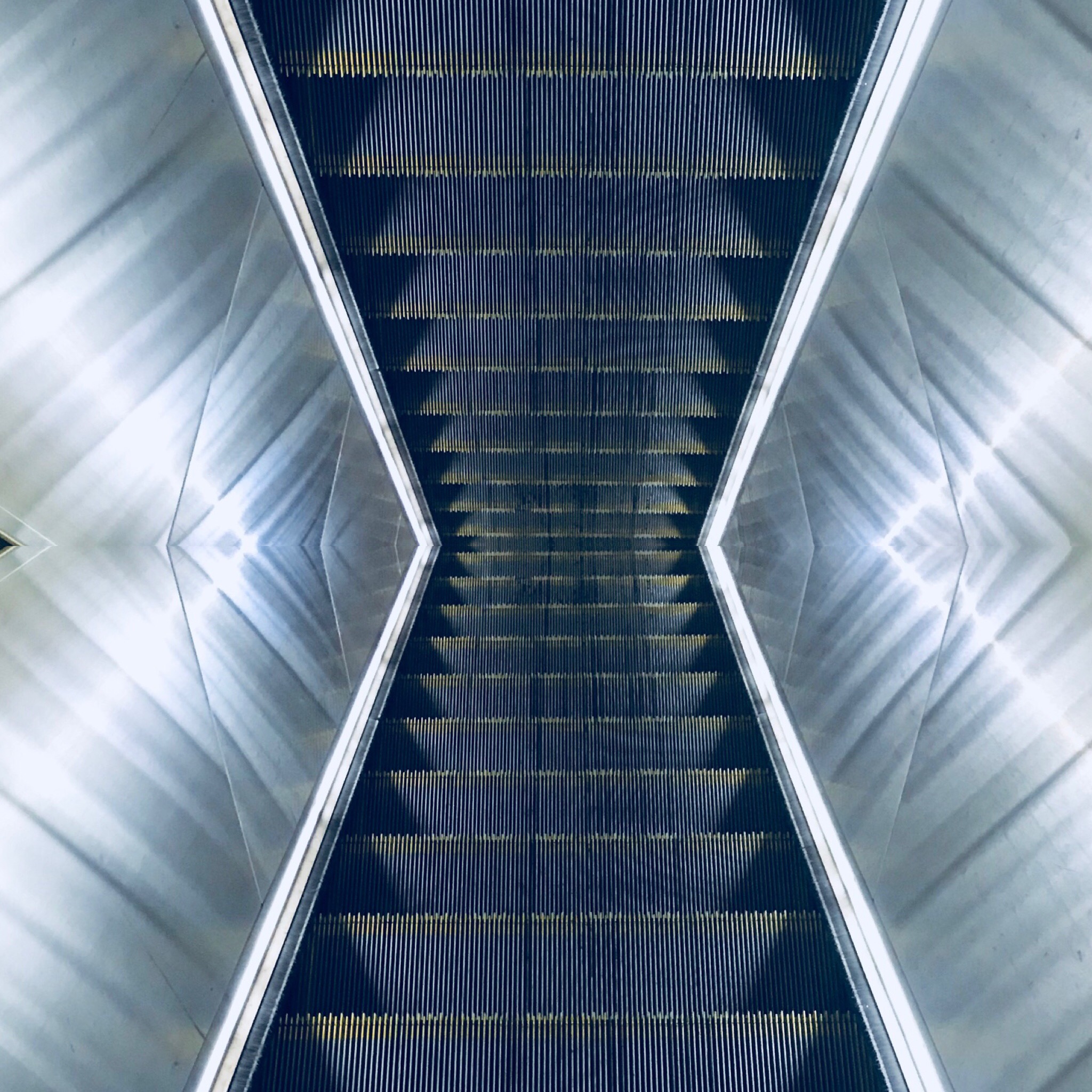 (mirrored photo of an escalator taken on iPhone 7)