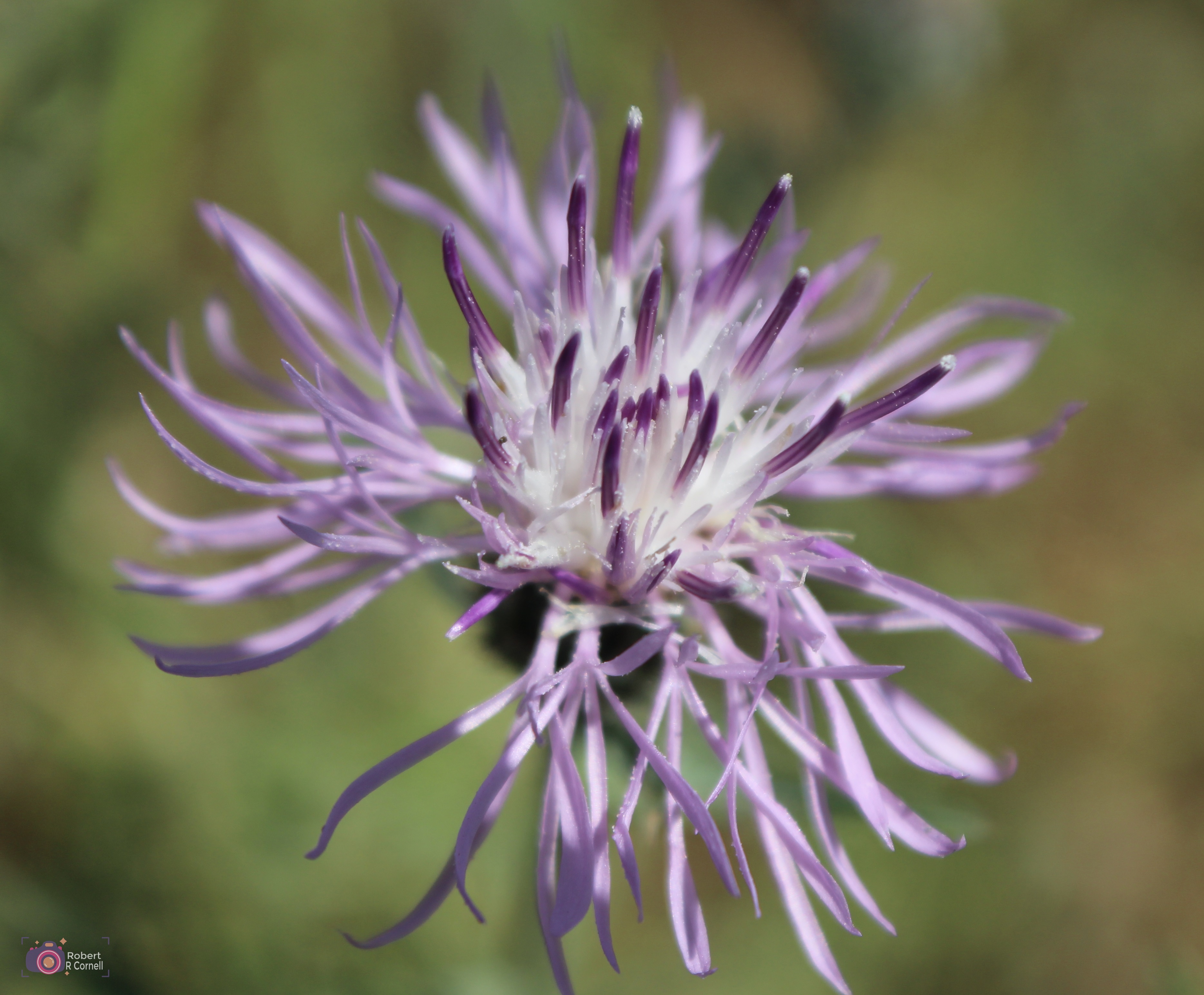 This next flower is from a noxious weed called knapweed. It does have a pretty blossom, yet it is vary invasive. The past two years I bought bugs to help eradicate it. My population of bugs is expanding nicely. It will take years to get it under control, but safer than using poison. Even with all that it is a very pretty flower.