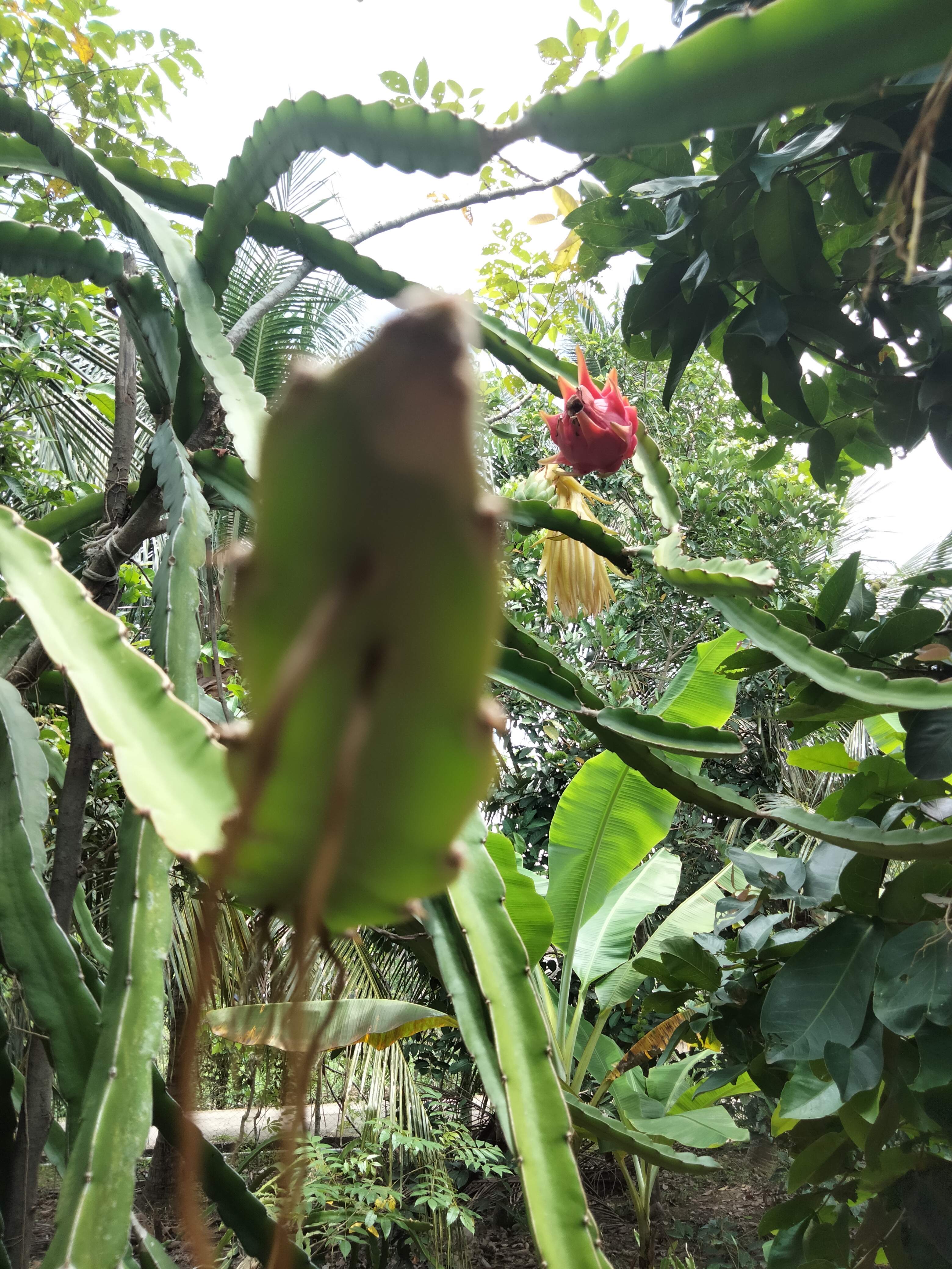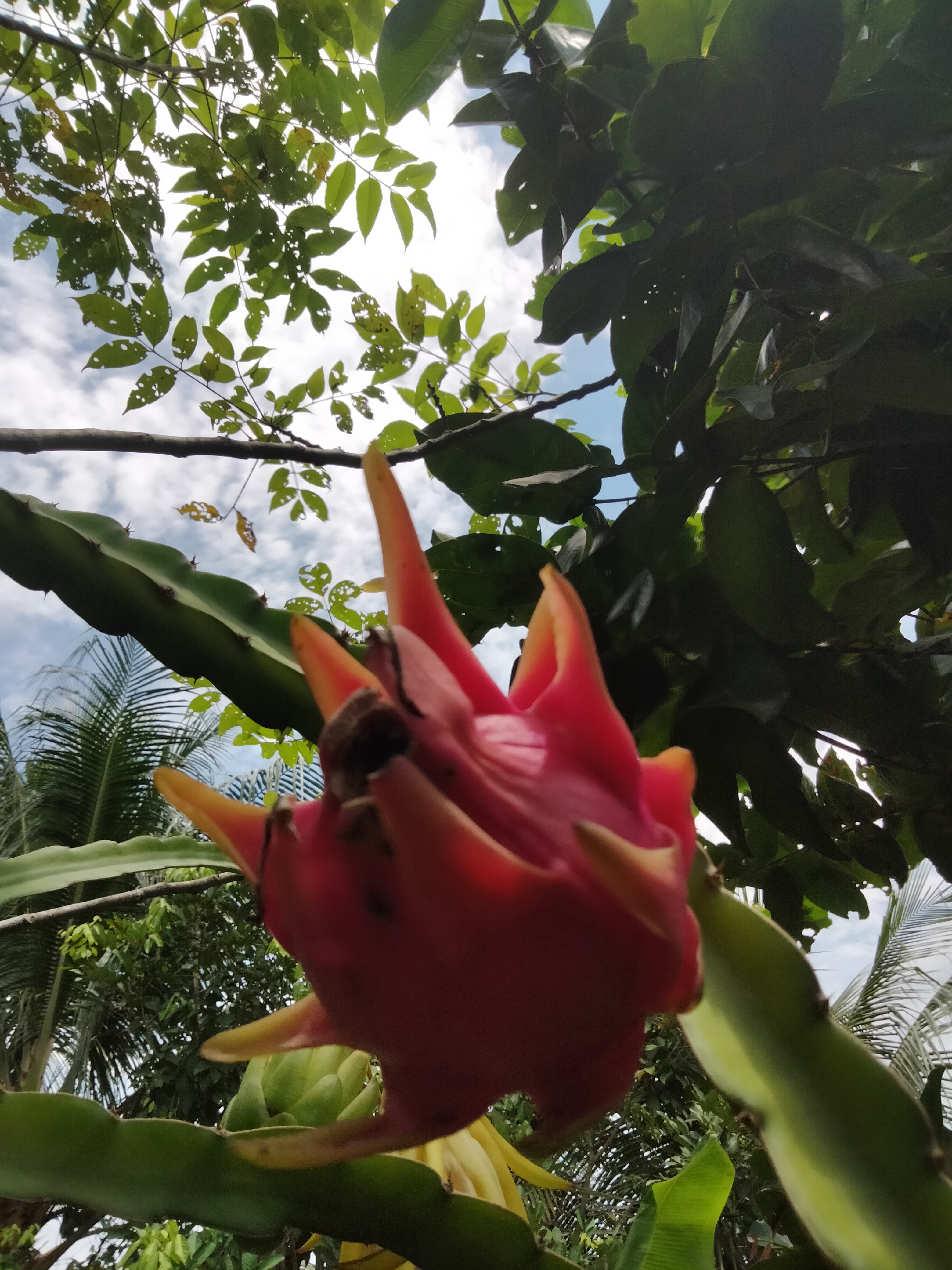 Pohon naga ini sangat langka di daerah saya sendiri karena Mareka takut menanamnya nanti pas waktu besar jadi naga yang sangat ganas hehehehe Alhamdulillah sekian lama saya rawat akhirnya tumbuh lah buah, proses tumbuhan nya yang saya liat pertama keluar dikit bagian batangnya kemudian besar seterusnya jadilah bunga dan putus nya bunga dan menjadi lah buah seperti gambar berikut ini