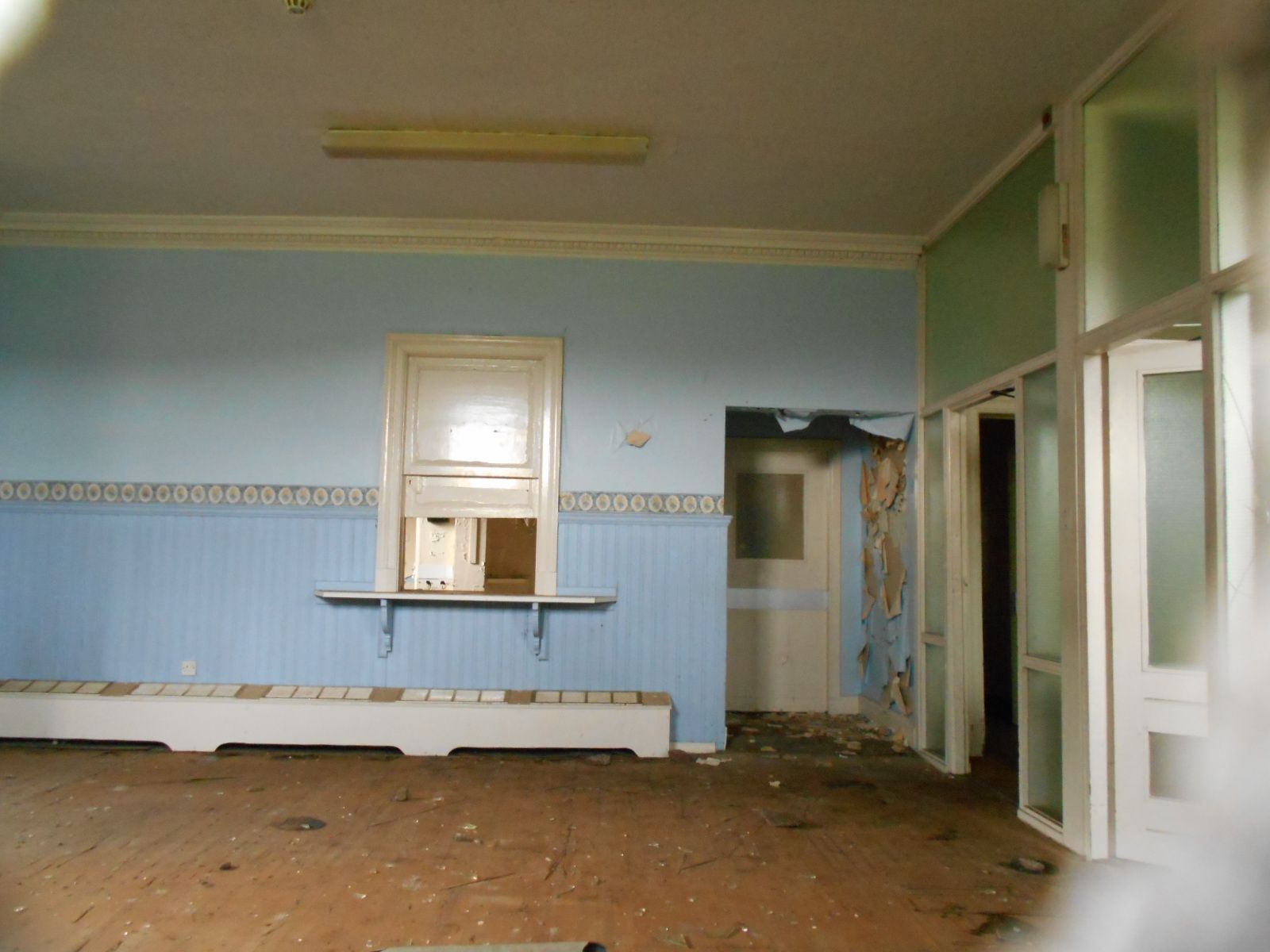 The picture of inside was taken by putting my phone up to holes in some of the board covering the windows, so they aren't anything special, but hope you enjoy!