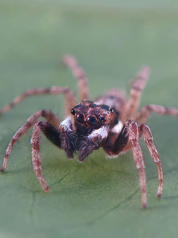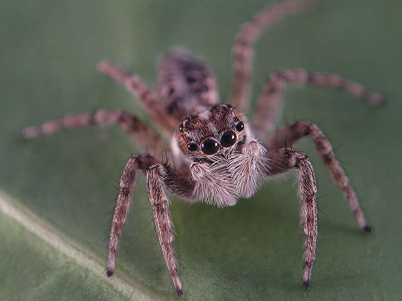 Menemerus semilimbatus is the only salty acid that we can find regularly inside homes. We must think of it as a beneficial animal that patrols walls and ceilings to eliminate any insect it finds, with the advantage that, unlike the rest of common spiders in the houses, it does not dirty the corners with cobwebs, since it hunts its prey by stalking them , chasing and jumping on them with more feline than spider gear.