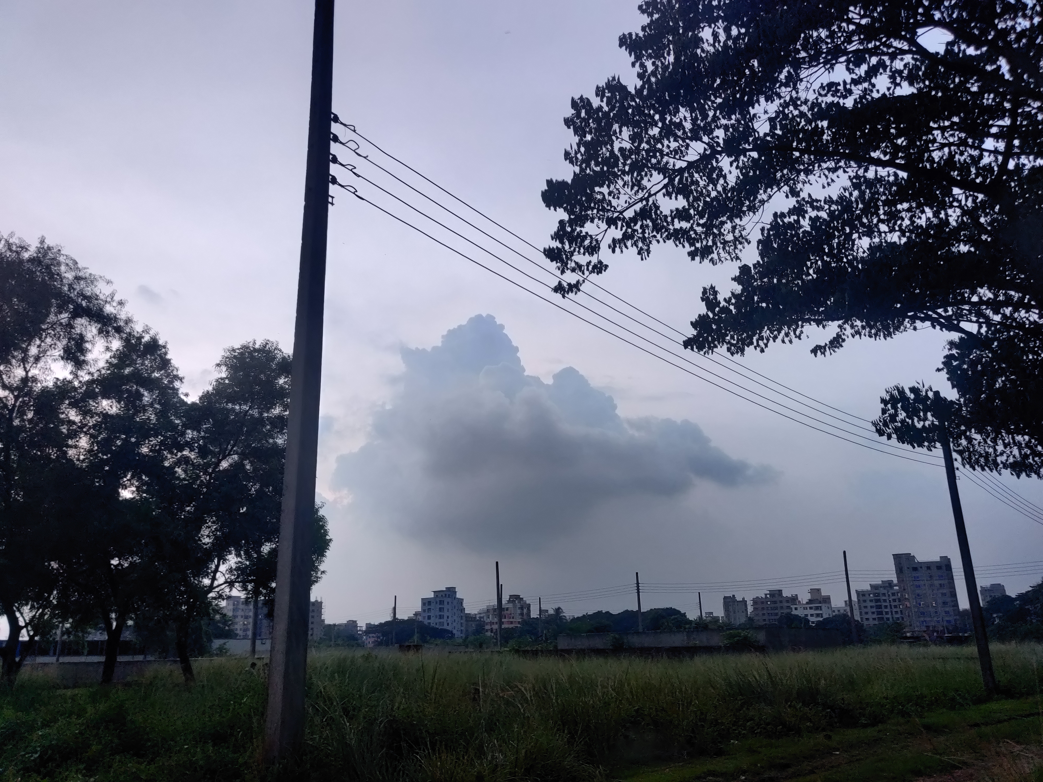 সেদিন ঘুরতে গিয়েছিলাম বনরূপা। তো সন্ধ্যা হয়ে গেছে ভাবলাম বাসায় ফিরে যাই। কারন সব বন্ধুরা আসবে এক সাথে আড্ডা দিবো। তো রওনা দেওয়ার আগেই দেখি এই মেঘ। মনে হচ্ছে যেনো এক গুচ্ছ মেঘ আমাদের দিকেই এগিয়ে আসছে। ফোন বের করে ছবি নিলাম। যদিও আলোর সল্পতা ছিলো অনেক। তবুও আমাকে থামায় কে। তুলে ফেললাম ছবি।