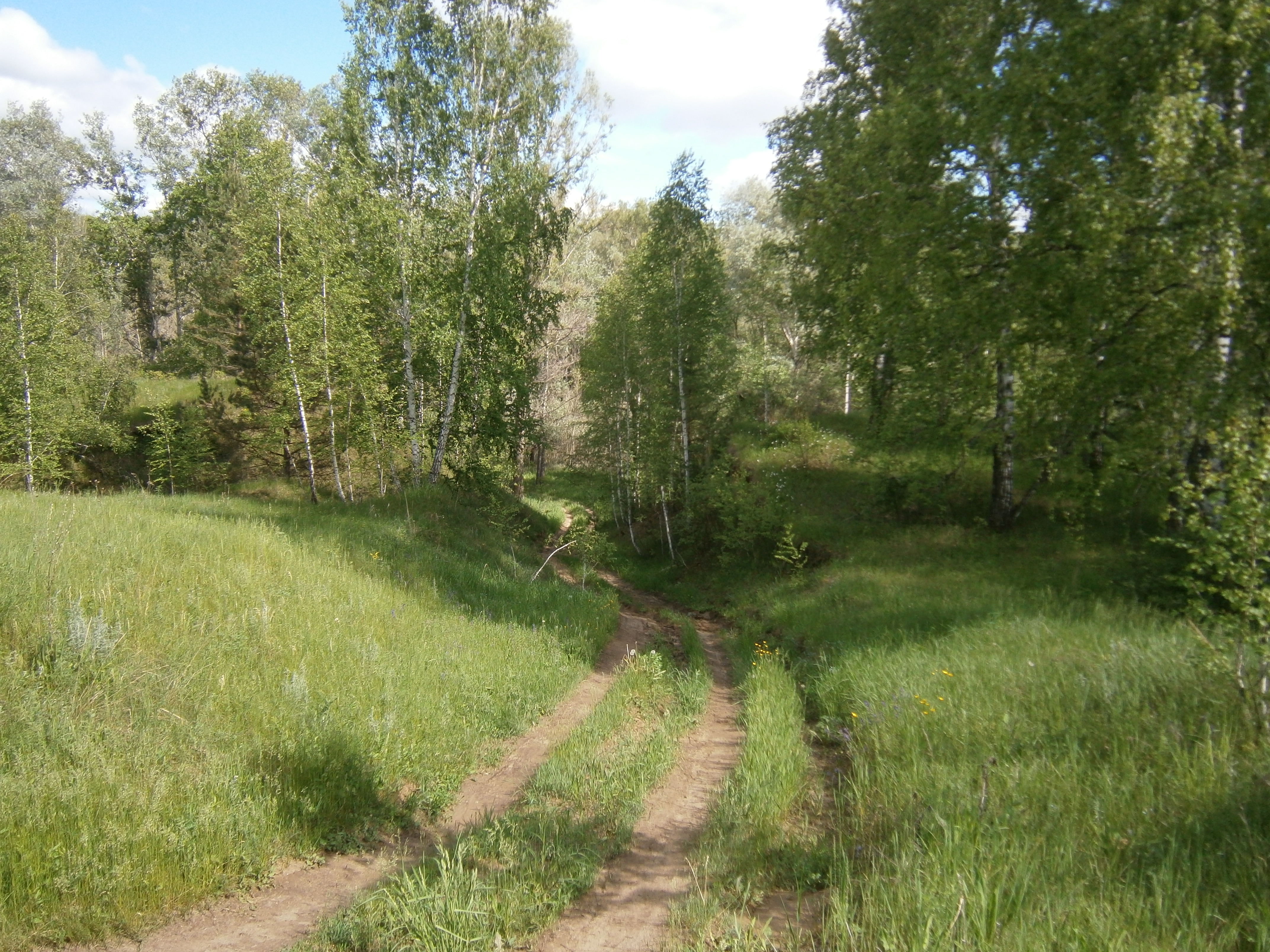 And this is one of the many roads to the river through a birch grove.