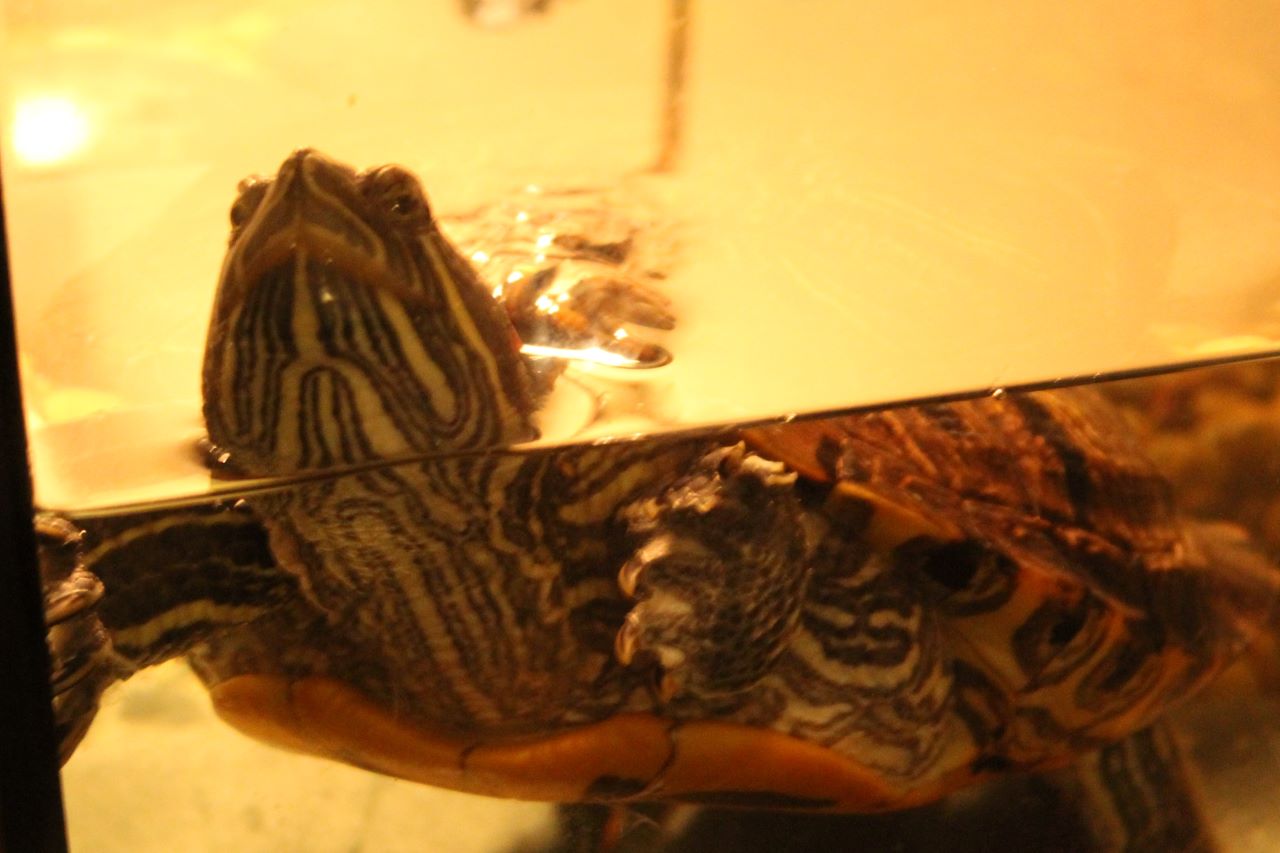 One of my turtle, Marv; I have had her for about 12 years. I love how she seems as curious about the camera as I am. In actuality she is giving me the stink eye. She's quite friendly to others but has never liked me too much; maybe because I gave her a man's name before she got old enough to tell that she was female.