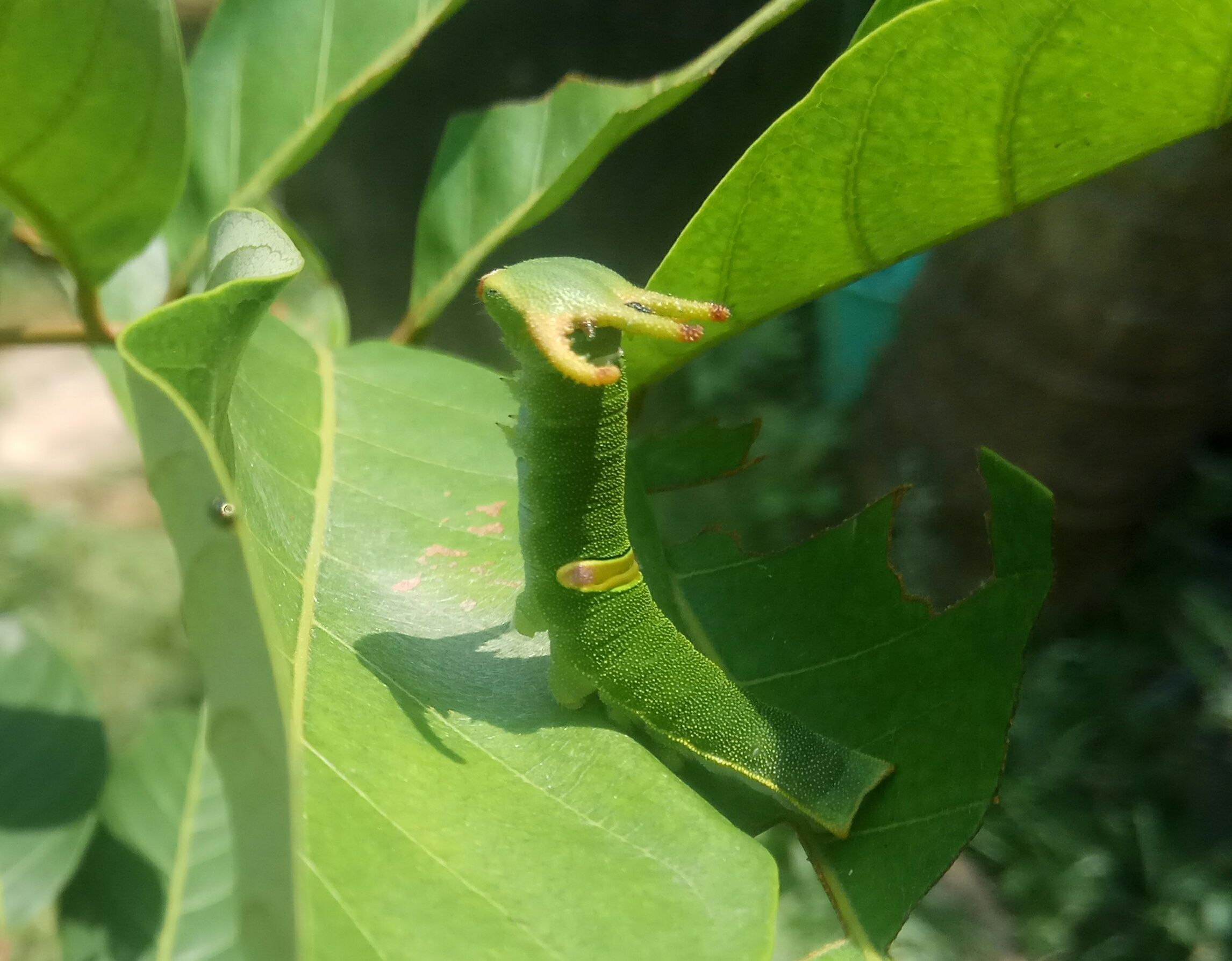 Lately it's been so often I see this caterpillar perched on the leaves of the rambutan plant that is in the front yard of the house where I live. It looks like this caterpillar just stays in place and does not look greedy. Body length reaches 6 and 8 cm. The green color resembles a leaf and sometimes stands like a cobra.
