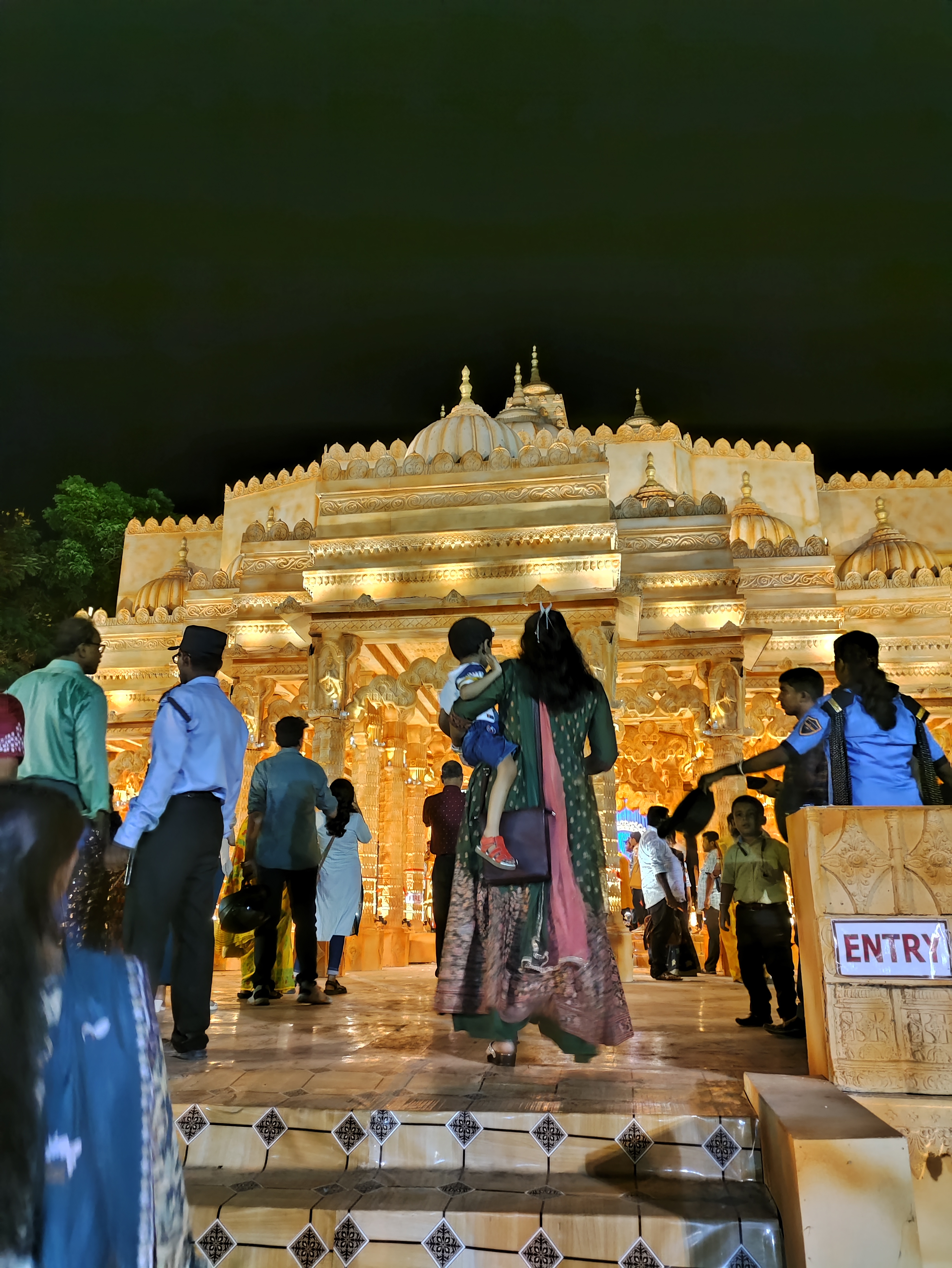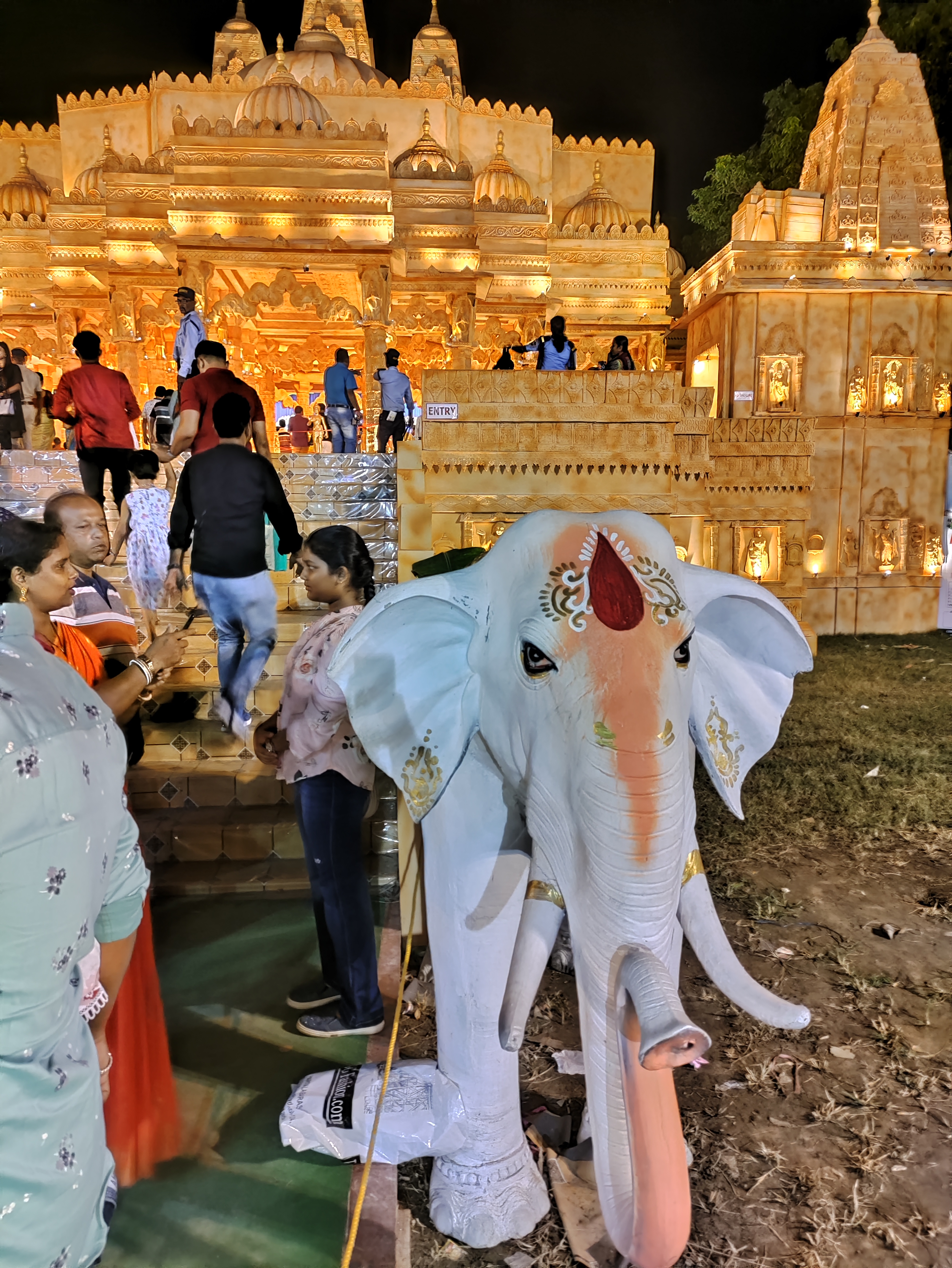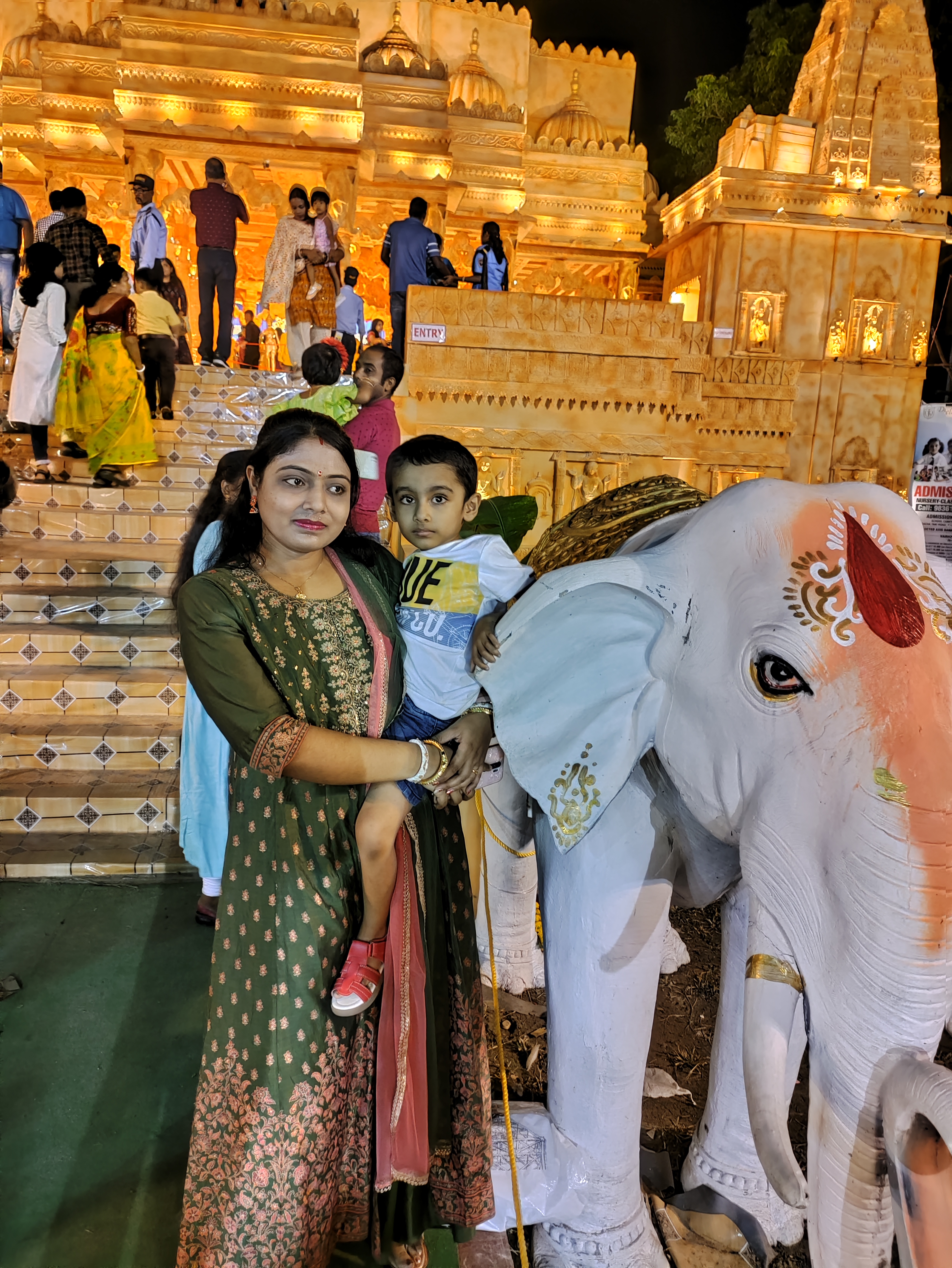 মণ্ডপে ঢোকার প্রবেশদ্বারের দু'পাশে রয়েছে দুটি শ্বেত হস্তীর মূর্তি। টিনটিনবাবু হাতি দেখে ভীষণ উত্তেজিত হয়ে "হাতি হাতি" বলতে লাগলো। তাই টিনটিনবাবু আর তার মাম্মা হাতির পাশে দাঁড়িয়ে পোজ দিয়ে ফোটো তুললো।