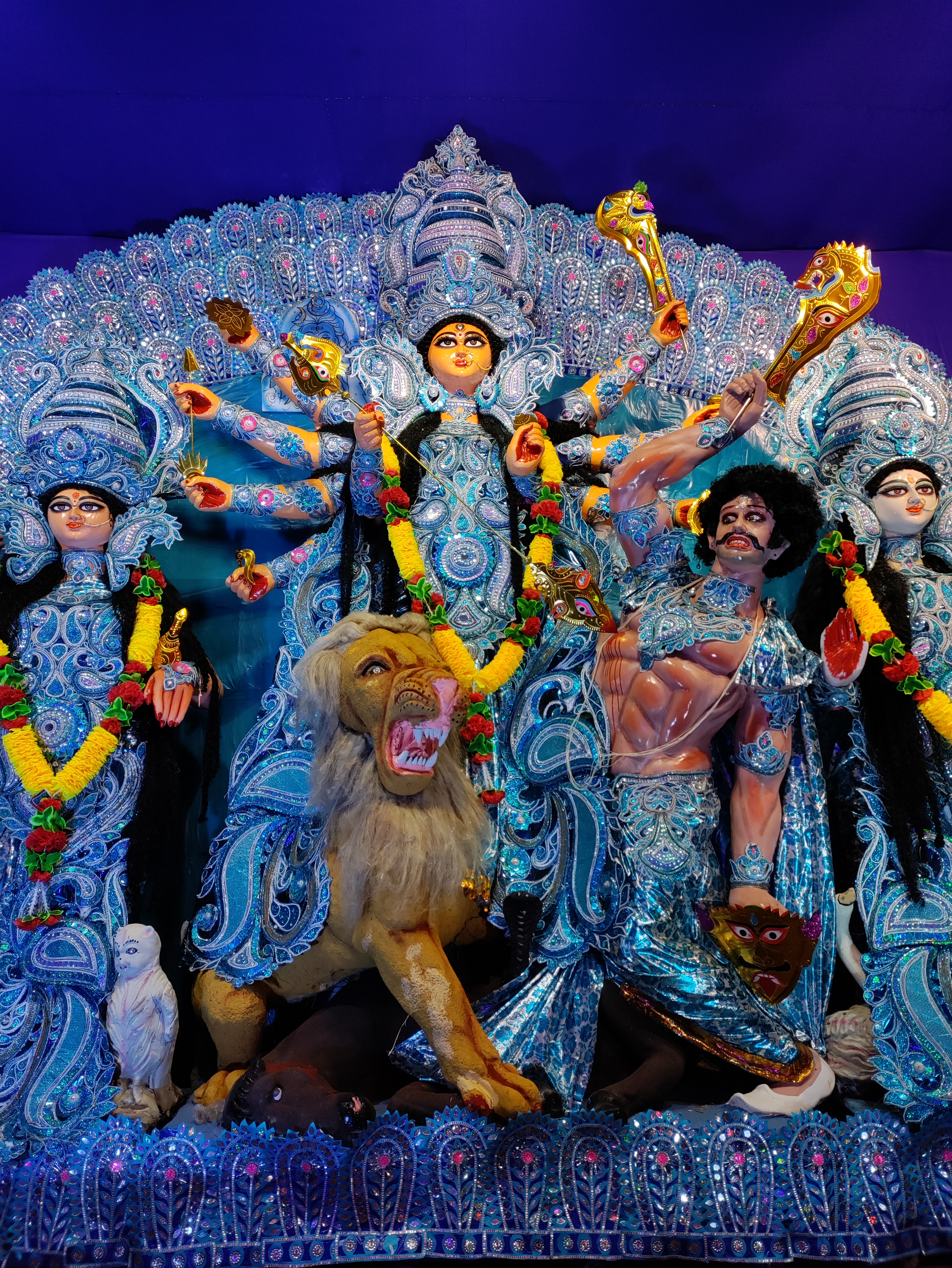 এই মণ্ডপে কোনো থিম পুজো হয়নি বাট দূর্গা প্রতিমাটা জাস্ট অসাধারণ হয়েছে। আমি অনেক্ষণ ধরে অবজার্ভ করে দেখলাম আসলেই অসাধারণ শিল্প ।
