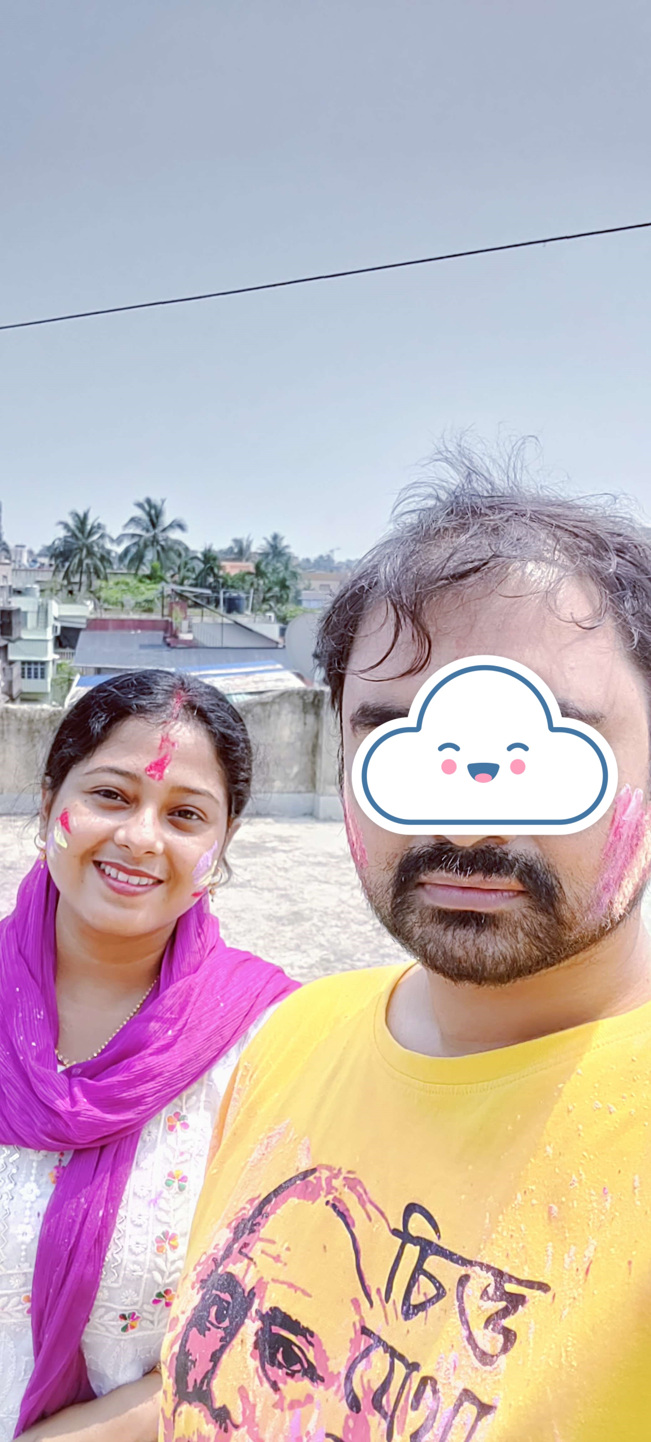 আবীরে মেখে স্বাগতার সাথে সেলফি ।