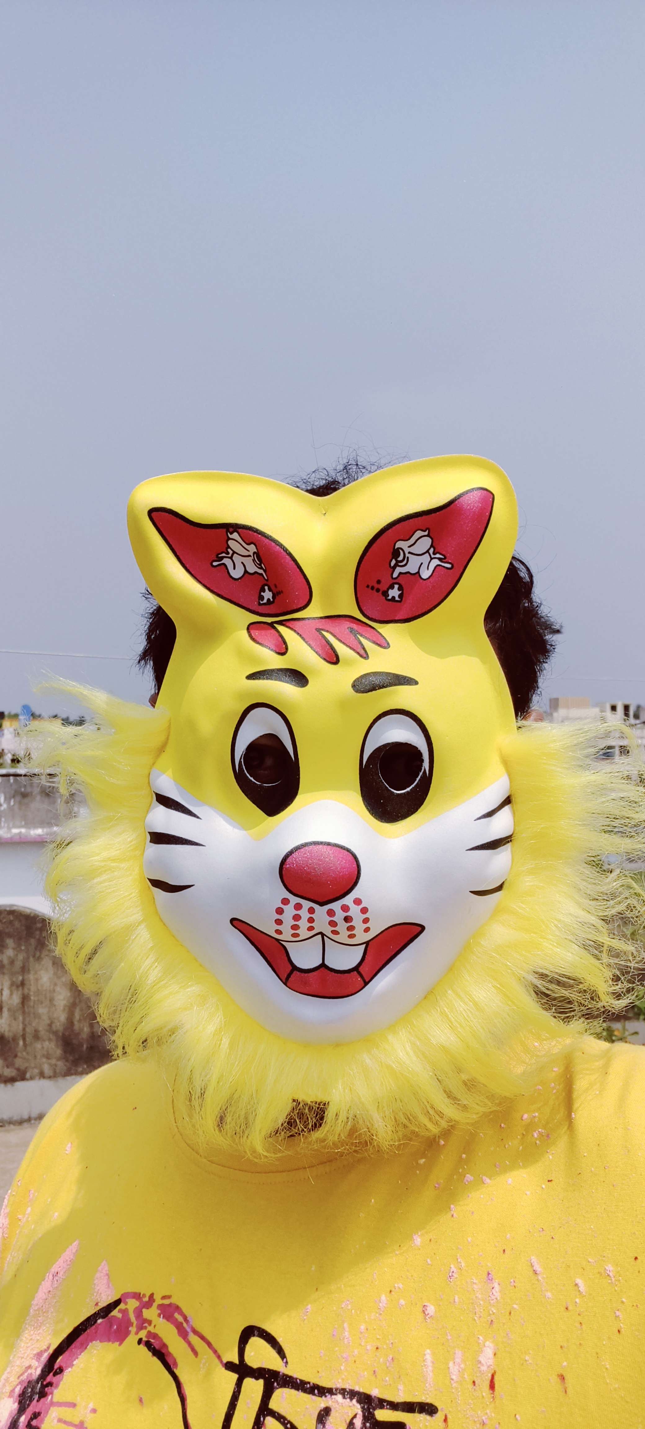 প্রথম দফায় সবার মুখে, গায়ে, মাথার চুলে বিভিন্ন রঙের আবীর মাখামাখি চললো বেশ কিছুক্ষণ ধরে । এই আবীর মাখানো বেশ মজার খেলা । দারুন এনজয় করলাম আমরা সবাই মিলে । গোলটুর মুখোশ পরে আমিও কয়েকটি পোজ দিলাম । এরপরে বালতিতে আবীর গুলে পিচকারি আর স্প্রে গান দিয়ে তাই ছেটানোর খেলা চললো আরো বেশ কিছুক্ষণ ধরে । এই সময়টাতে দারুন মজা হলো ।