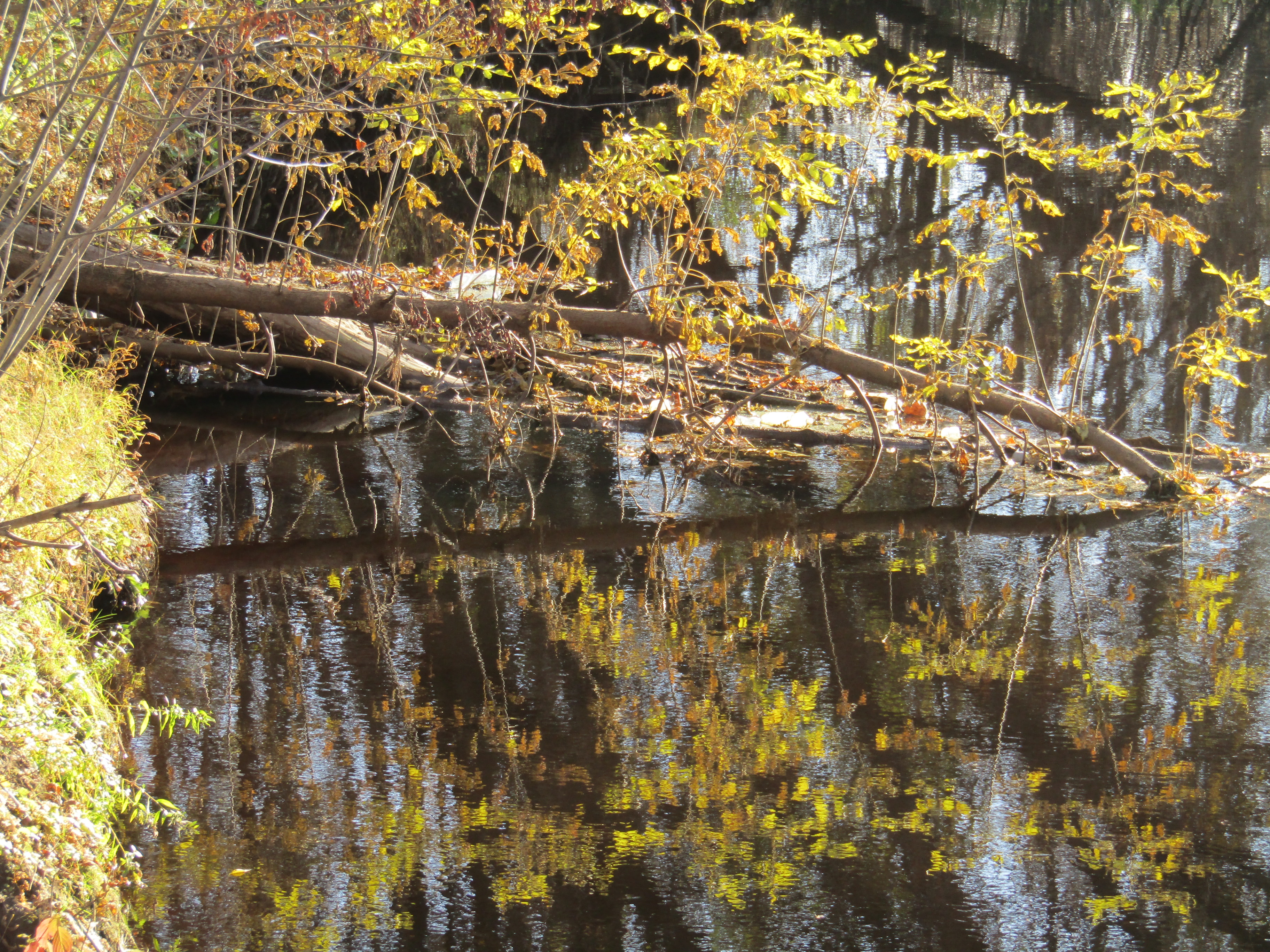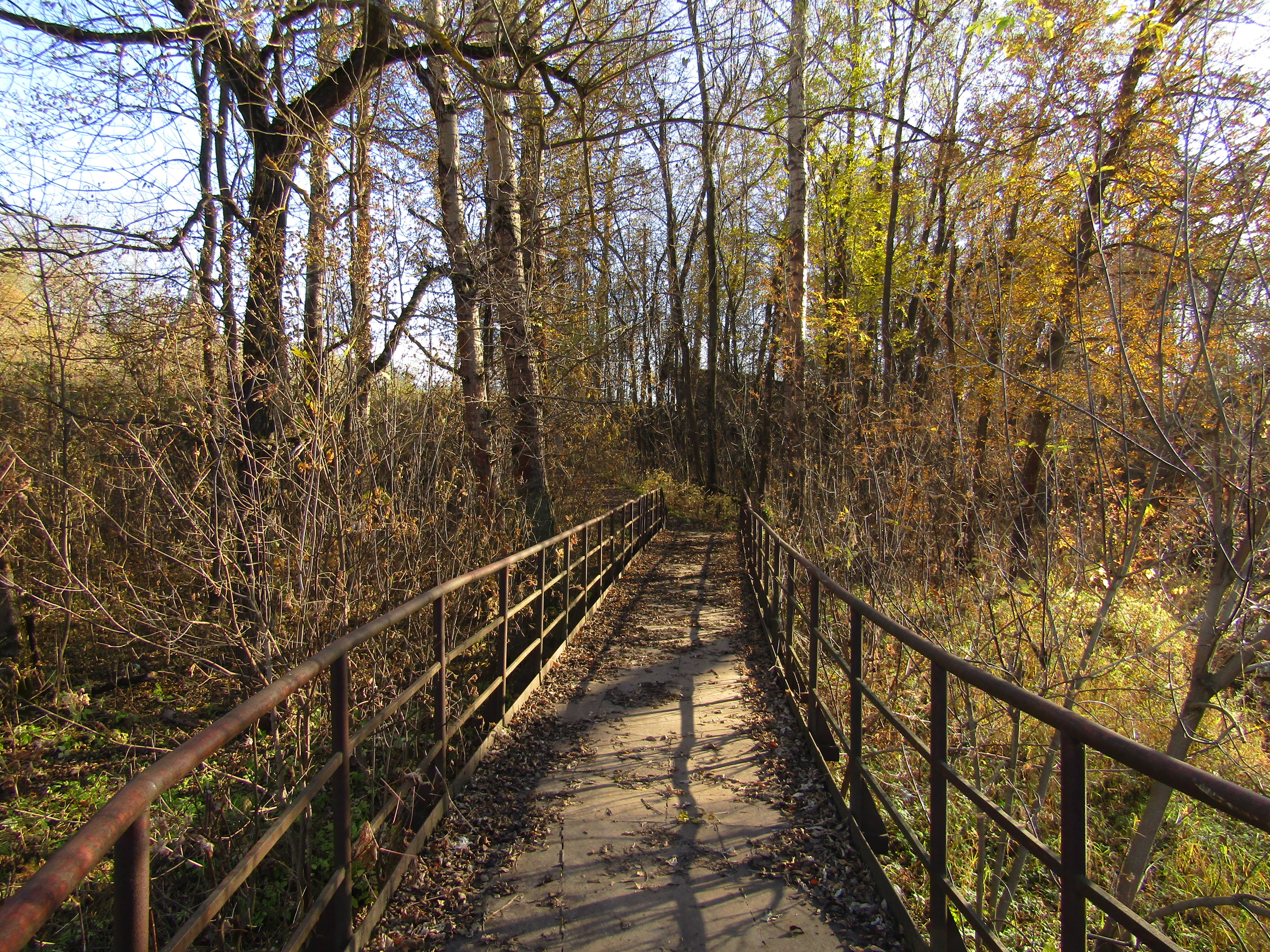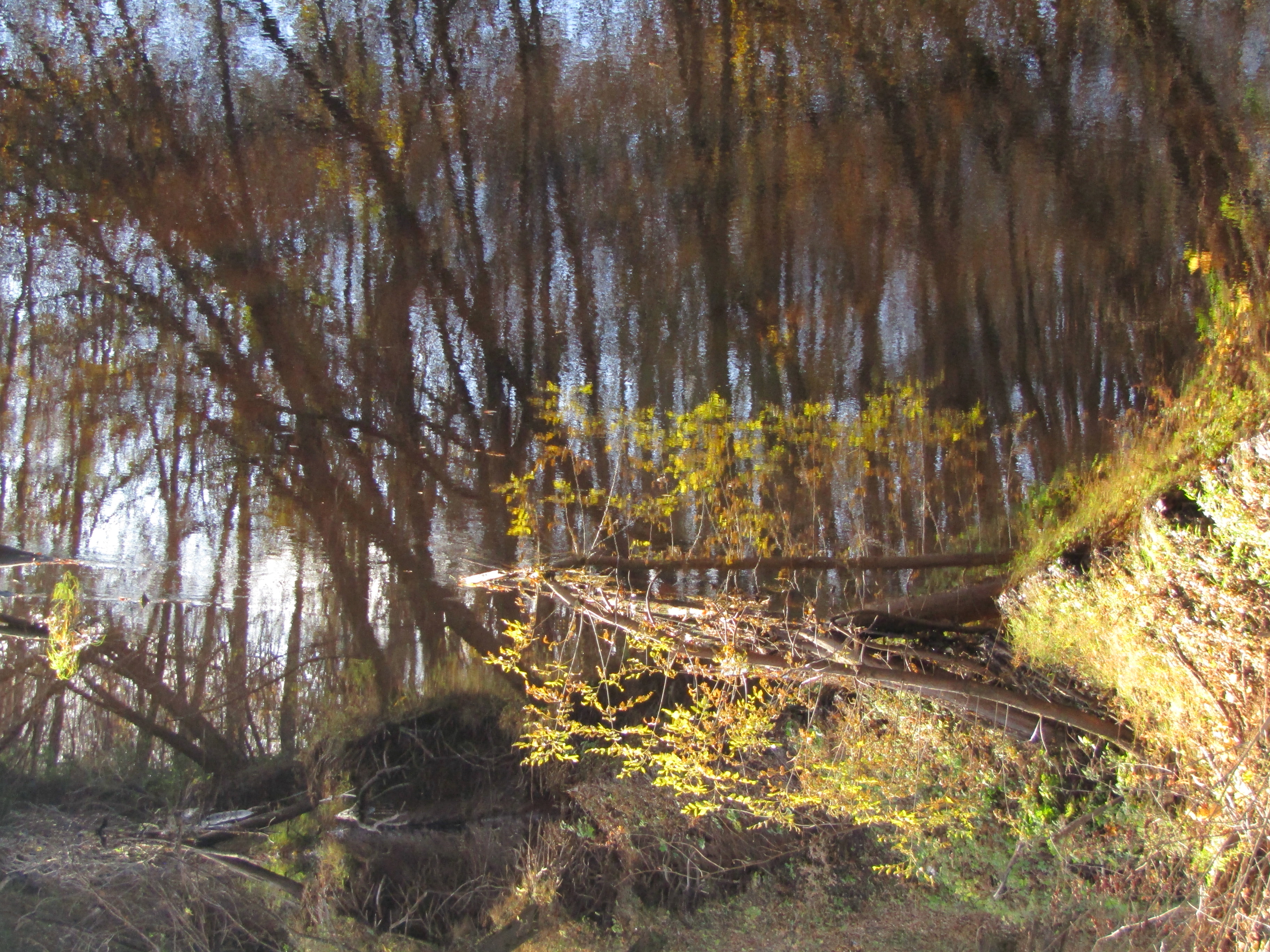Зеркальный мир зачастую выглядит прекраснее чем реальный и поэтому я люблю наслаждаться динамикой отражений в текущей воде и мне было приятно стоять на железном мостике через маленькую речушку в чудесный осенний день .