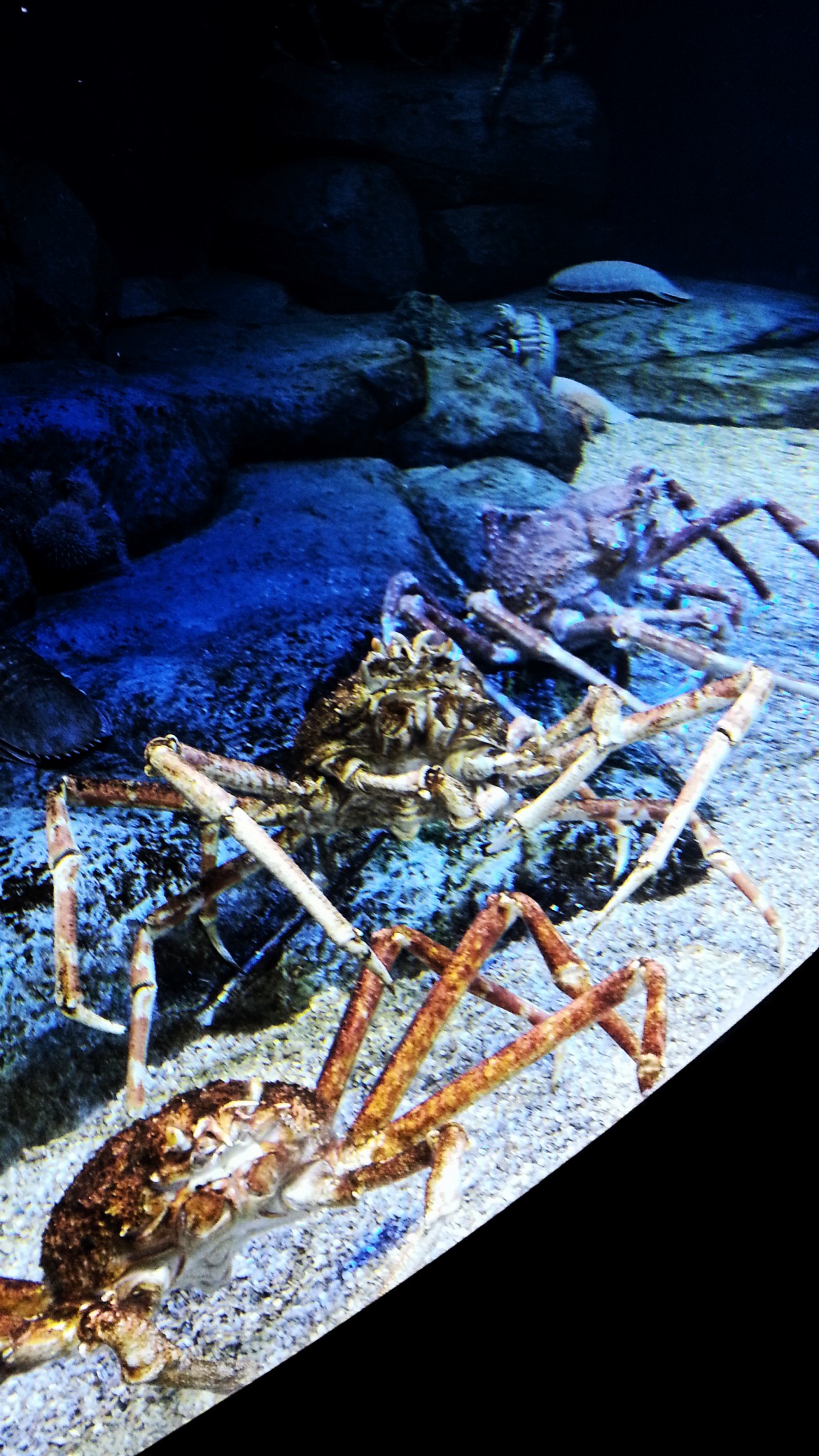 In the S.E.A. Aquarium there are giant species of crustaceans that's called King Crab. The pincers are as big as large pliers and has the strength to crush even a adult human's hand. They look tremendously scary!