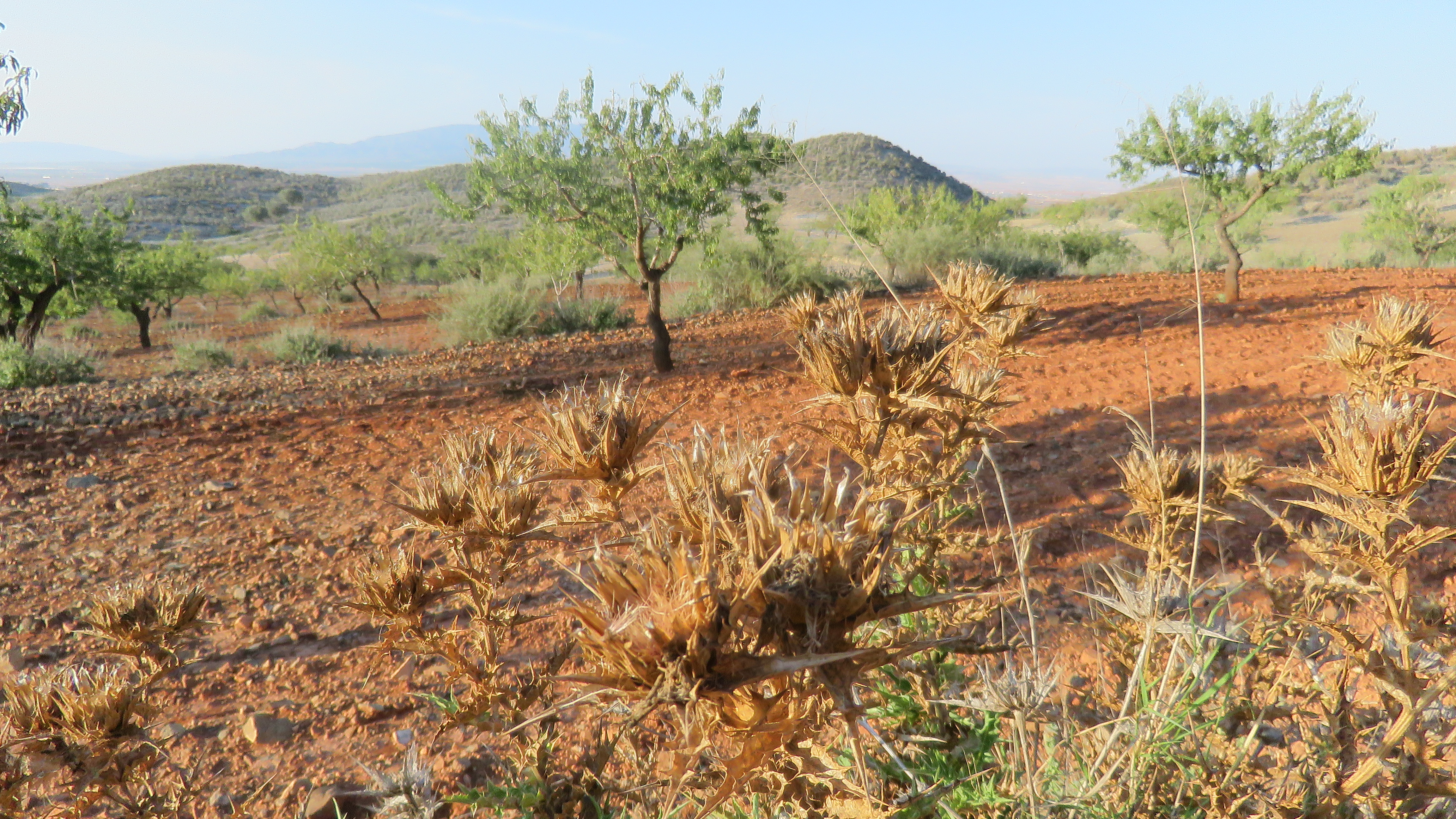 The hillsides of Southern Spain are wonderful for walking. Today was a beautiful 33 degrees C and more clear blue skies. The air on the hillsides has the most amazing scent of wild rosemary ( Romero in Spanish ) and thyme ( Tomillo in Spanish). It is like a living aromatherapy experience that enlivens your body and spirit. I saw a baby snake but it squirmed out of sight before I could adjust my camera for the shot. I am looking forward to running into many more snakes while here.