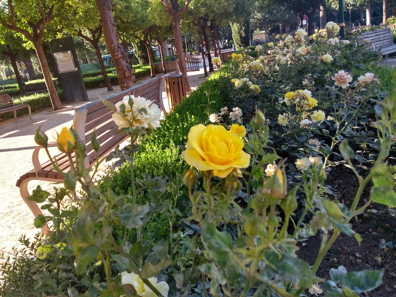 Estas rosas doradas se encuentran formando un jardín cerca de la Alcazaba de Málaga.