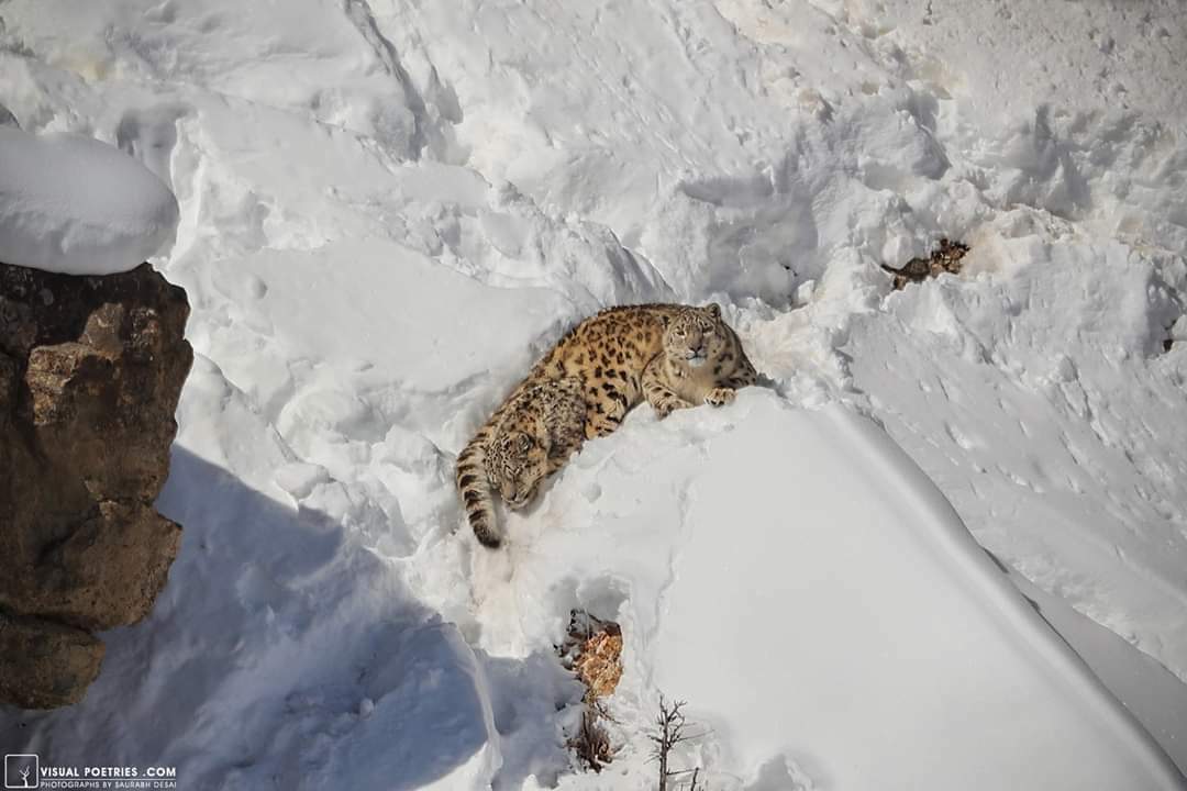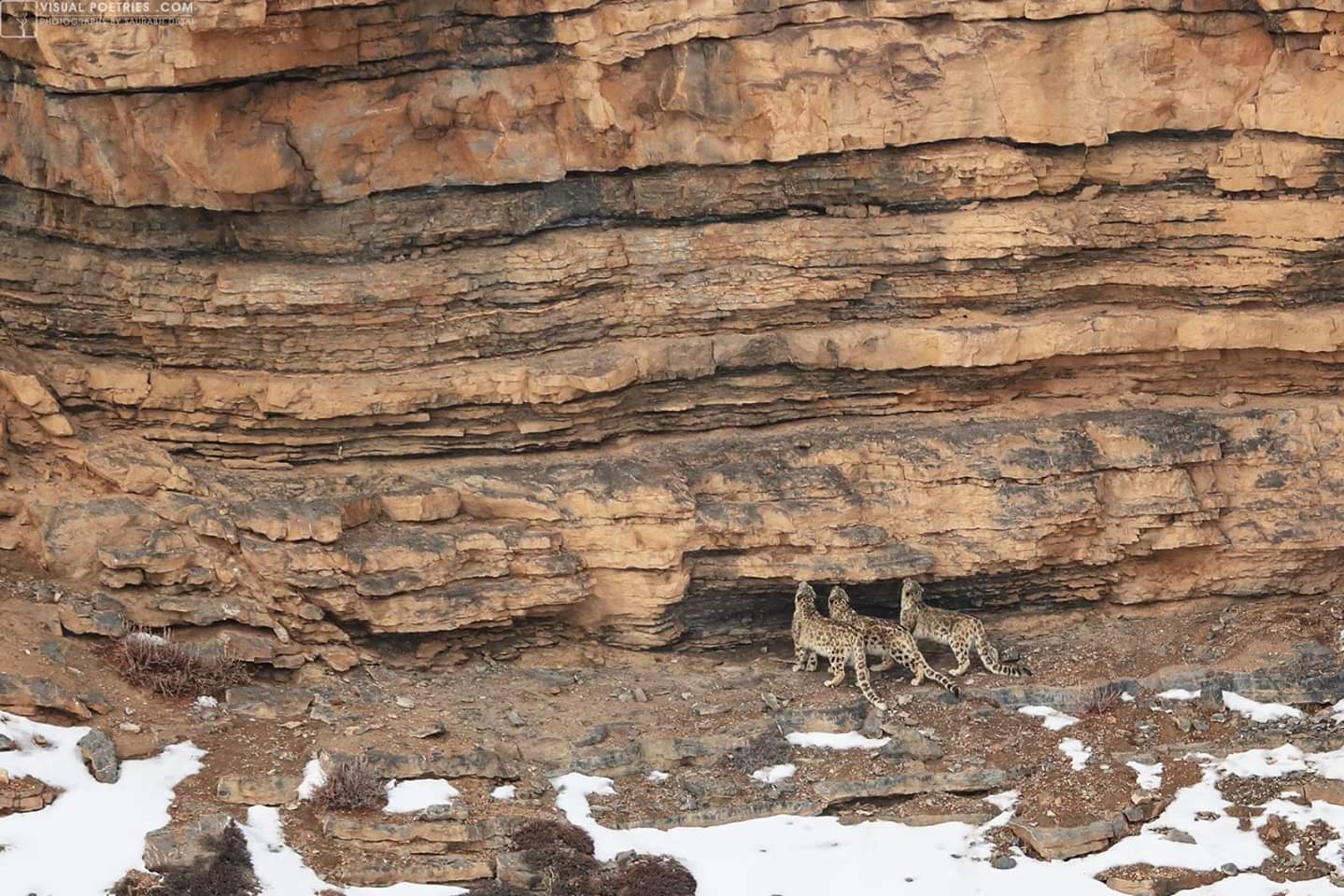 While mother Snow Leopard was inspecting her territory, kids are trying to mimic the act as their learning process, because they were almost two years old now and sooner or later need get separate from caring mother.