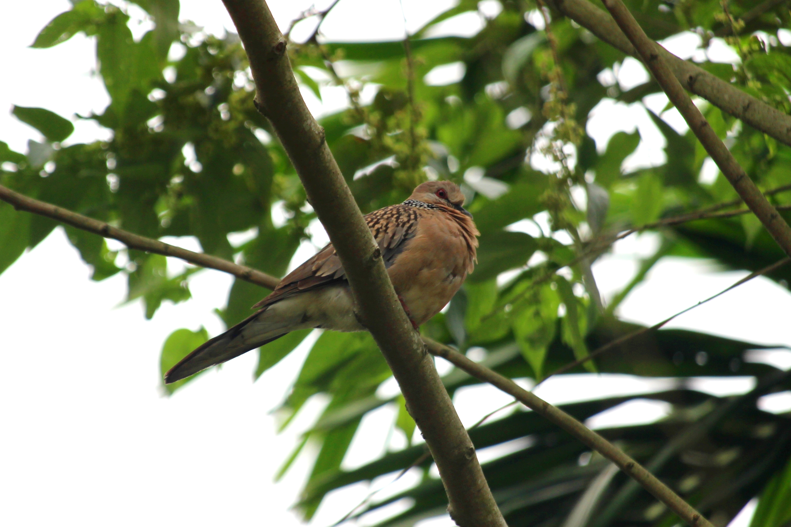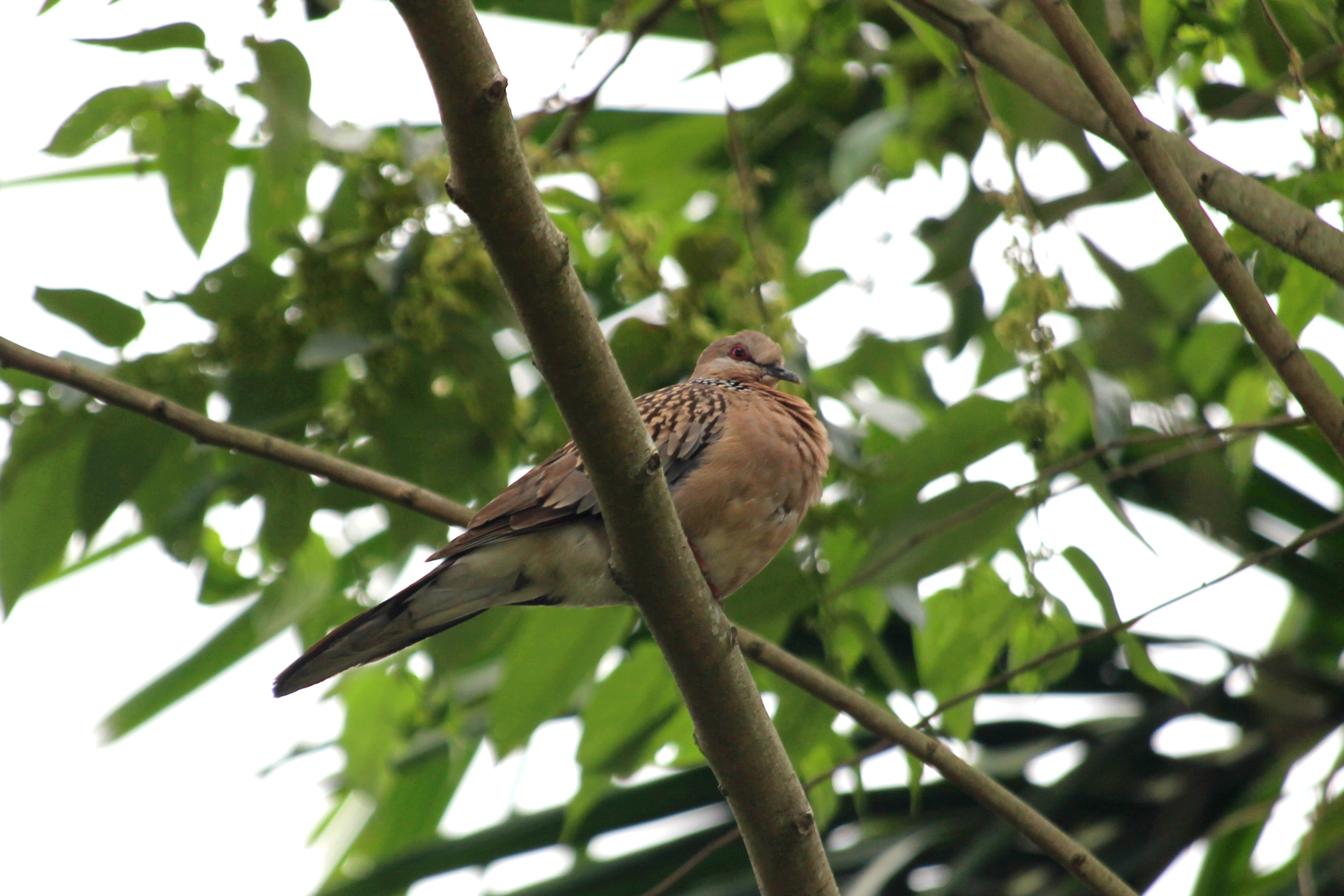 This is spotted dove bird.This bird looks like pigeon and looks so cute and lovely.The bird was sitting calmly on a tree.