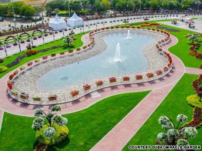 Such a garden is formed with the beauty of nature, with the charming mind of the human being. Its address is in a rich country in the Middle East, in Dubai.