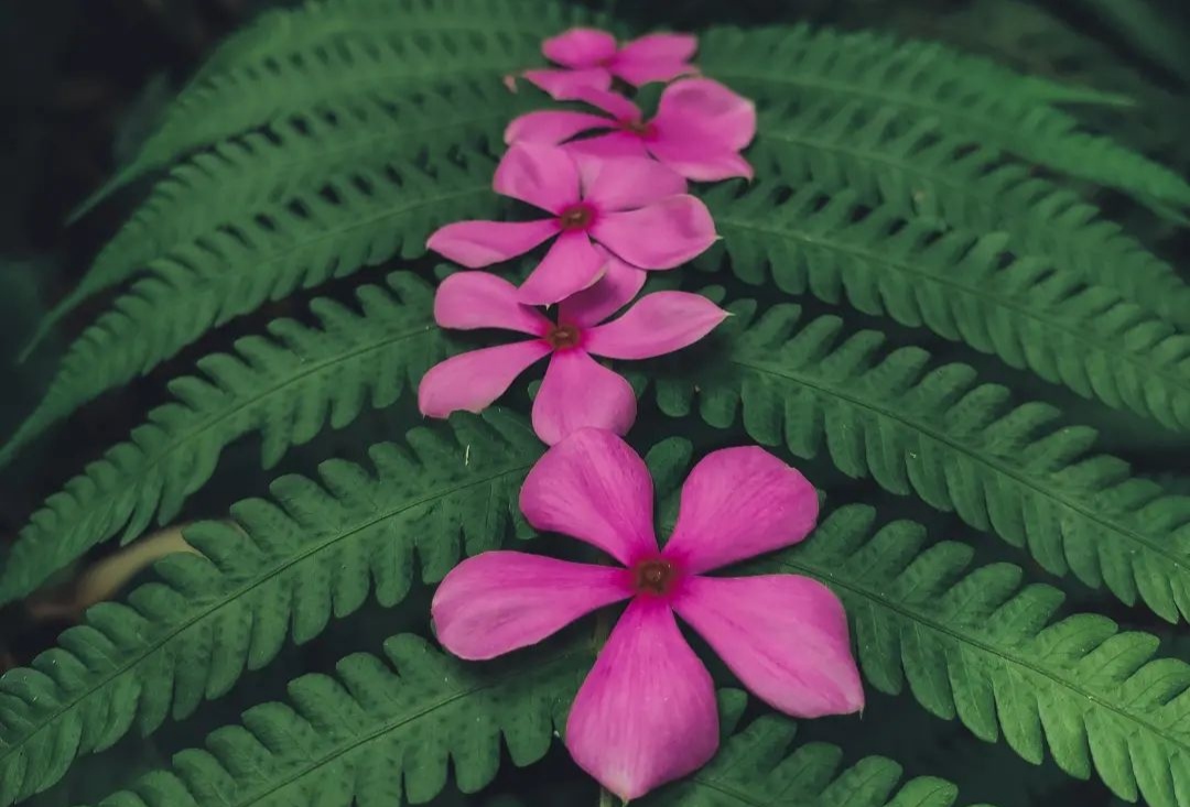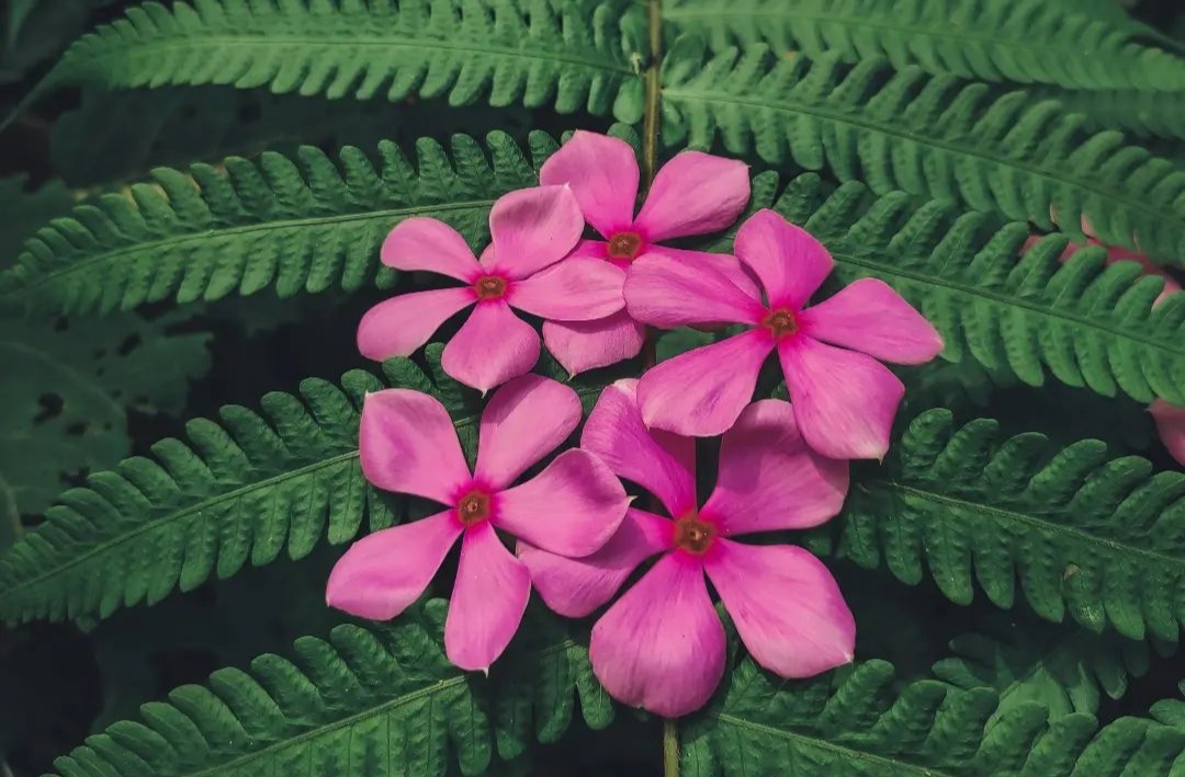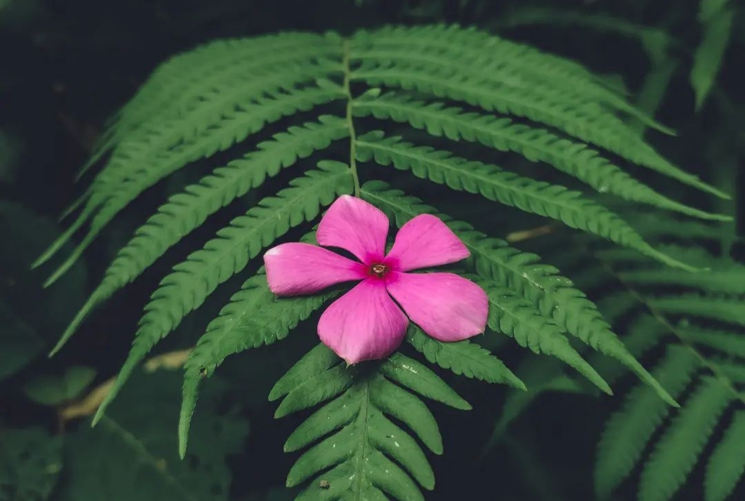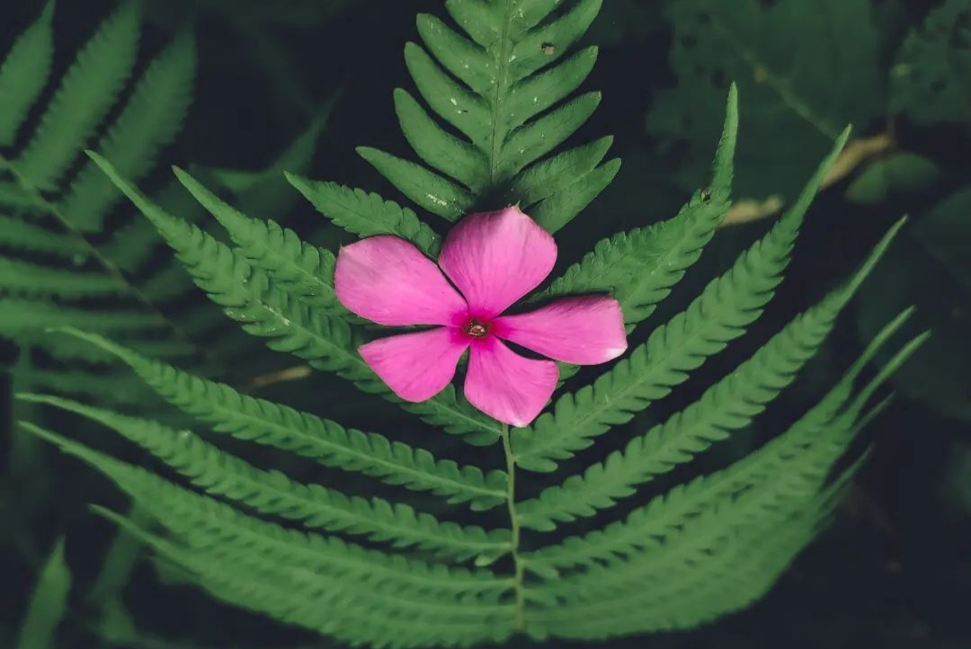 Pink Noyontara Flower on Fern Leaf