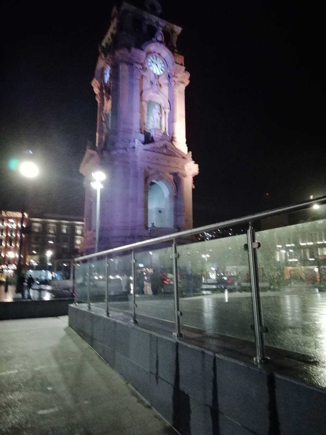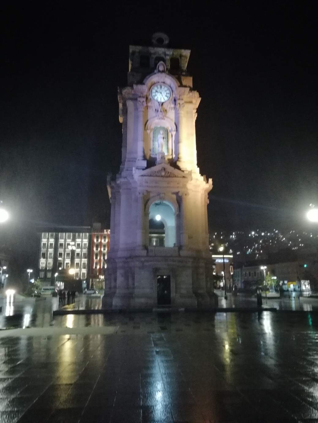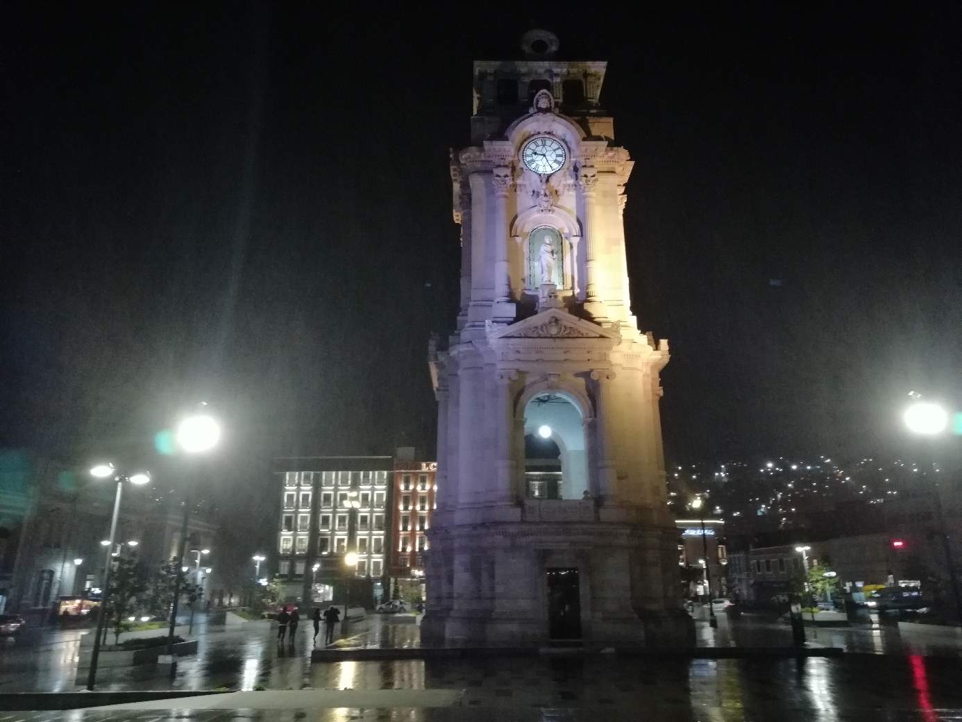 Es una típica noche lluviosa de octubre en Pachuca y es así como se aprecia esta bello reloj.