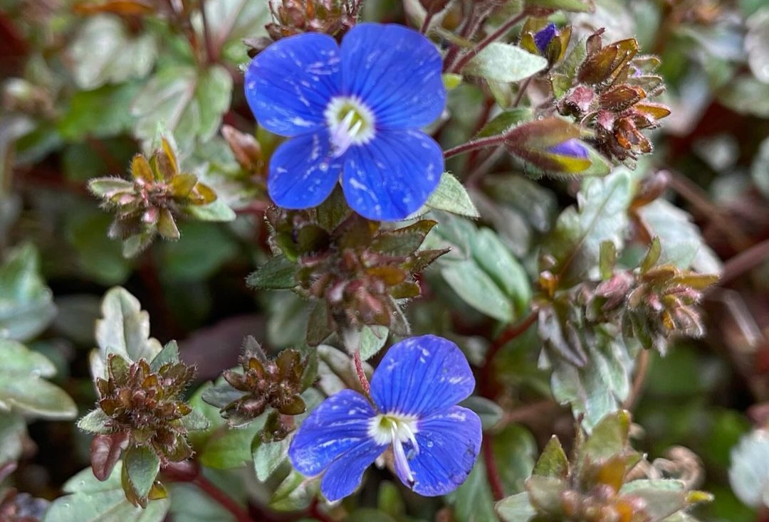 Germander Speedwell (Veronica chamaedrys) is a charming little wildflower that adds a touch of blue to the countryside, gardens, and meadows. Known for its vibrant blue flowers, this plant has a modest yet striking presence. Often seen as a common wildflower in Europe and parts of Asia, Germander Speedwell has become a favorite among gardeners and nature lovers alike.Germander Speedwell typically grows to a height of 10 to 50 centimeters (4 to 20 inches). Its most distinctive feature is its small, bright blue flowers that bloom in late spring to early summer. Each flower has four petals, with the lower petal being slightly smaller than the others. The petals often have intricate dark blue lines that guide pollinators to the flower's center, adding to their beauty.