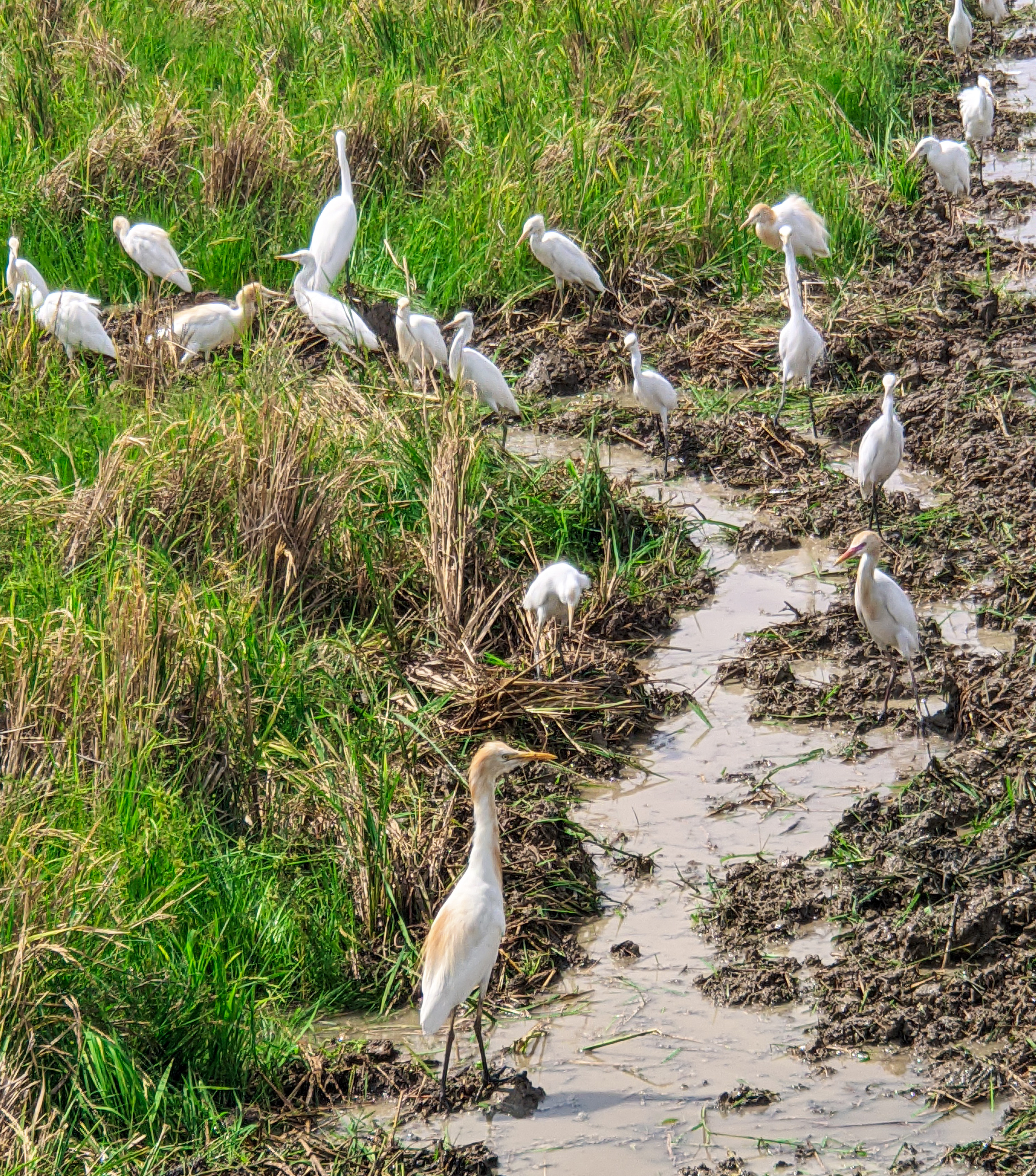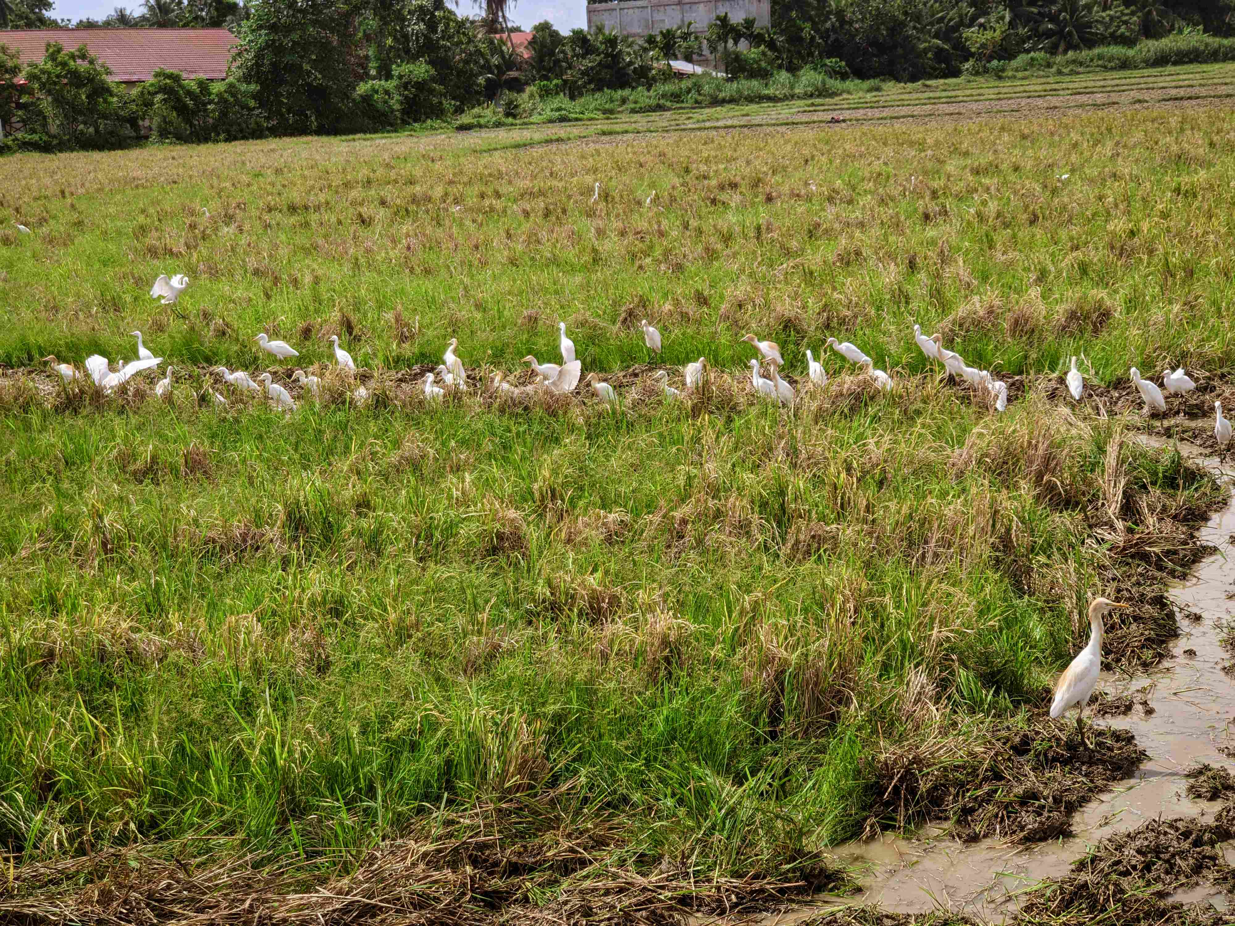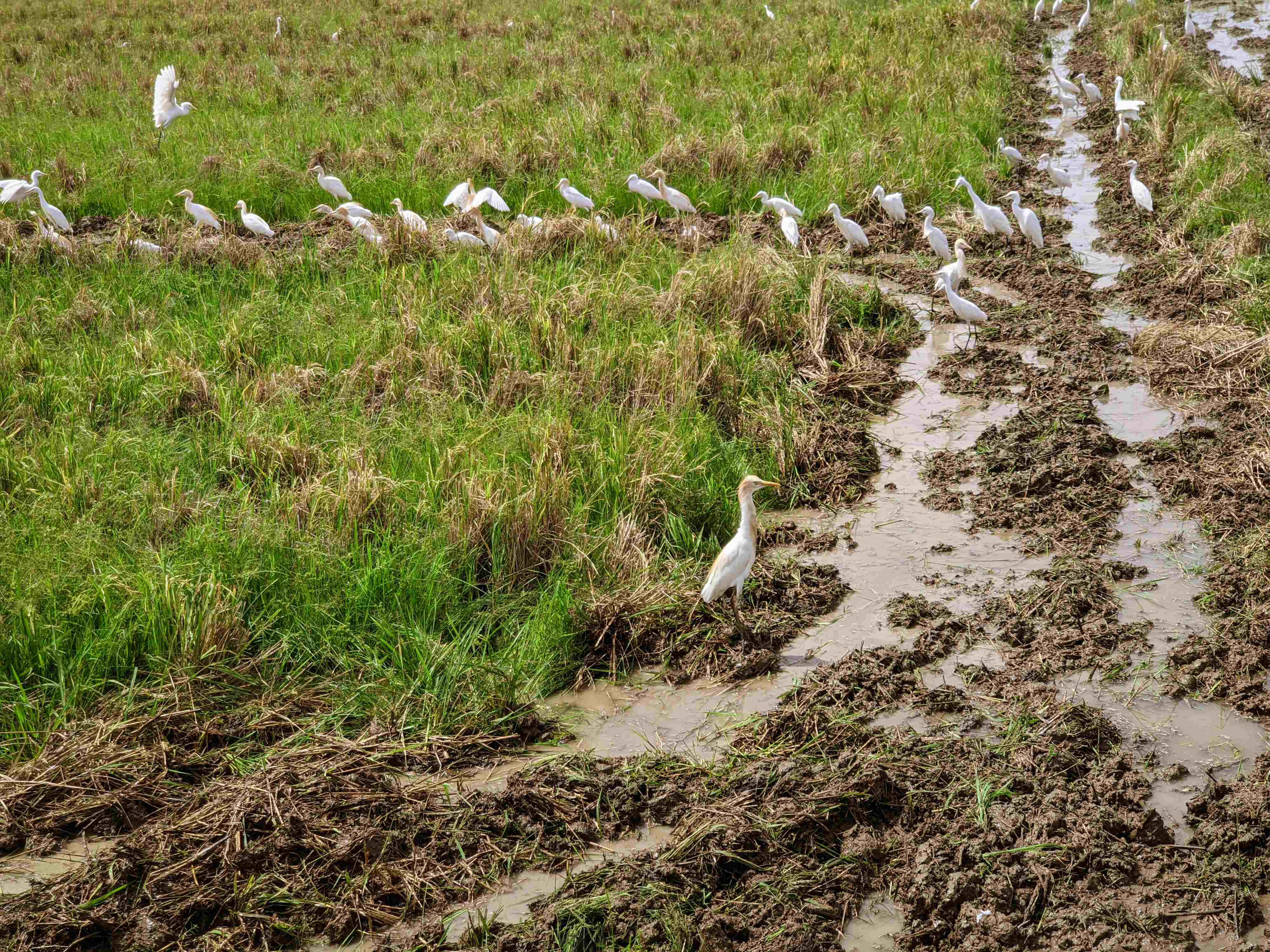 Selamat siang sahabat steemian semua semoga sehat selalu. Seperti biasa pemandangan ketika orang-orang sudah mulai turun kesawah untuk mempersiapkan tanah buat bercocok tanam, banyak burung bangau yang mecari makan ditanah garapan traktor dalam jumlah banyak.