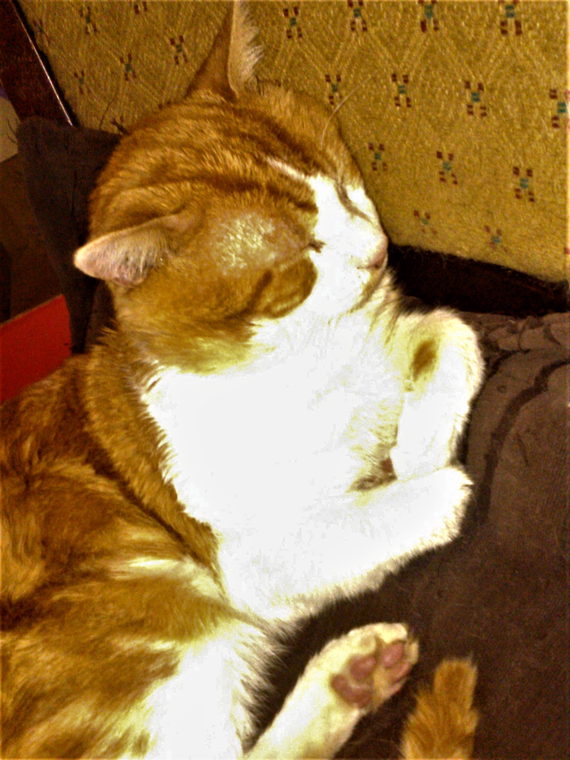 Toffee was a big cat and so mostly a brute to others but later in life he became the gentle giant, even to those who would start to harm him due to he's changed ways he would amazingly no longer fight back and wait for us to deal with the situation. If you look at the top left corner you can see Toffee's raccoon like tail as I like to call it.