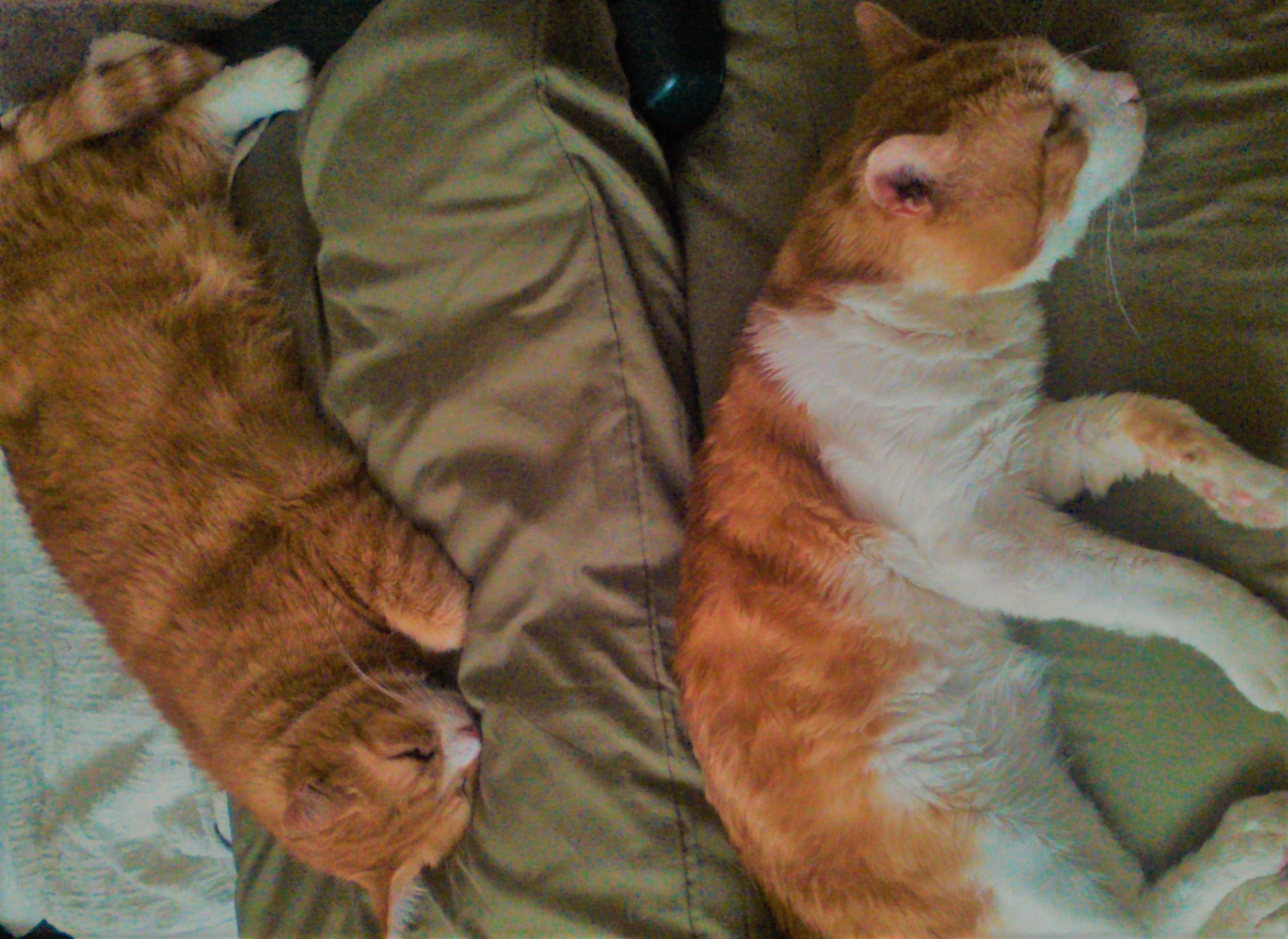 Anyway as for the picture today I share one of my cat Toffee, well not just Toffee but also Daniel who is the slightly younger brother of Toffee. In this picture they sleep on some pillows more or less close to each other, unfortunately the brothers aren't exactly close.