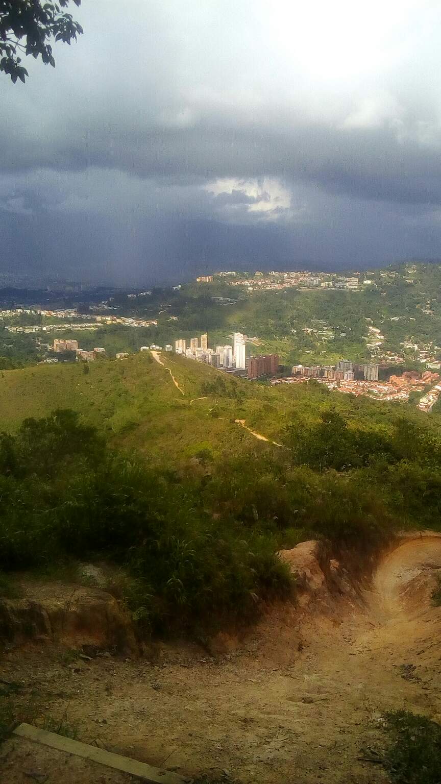 That's a picture of the volcano in caracas. You can see the downhill bike's track at the bottom of the pic and the sun along the track and finally the rain in the horizon. Supposed to be a panoramic picture
