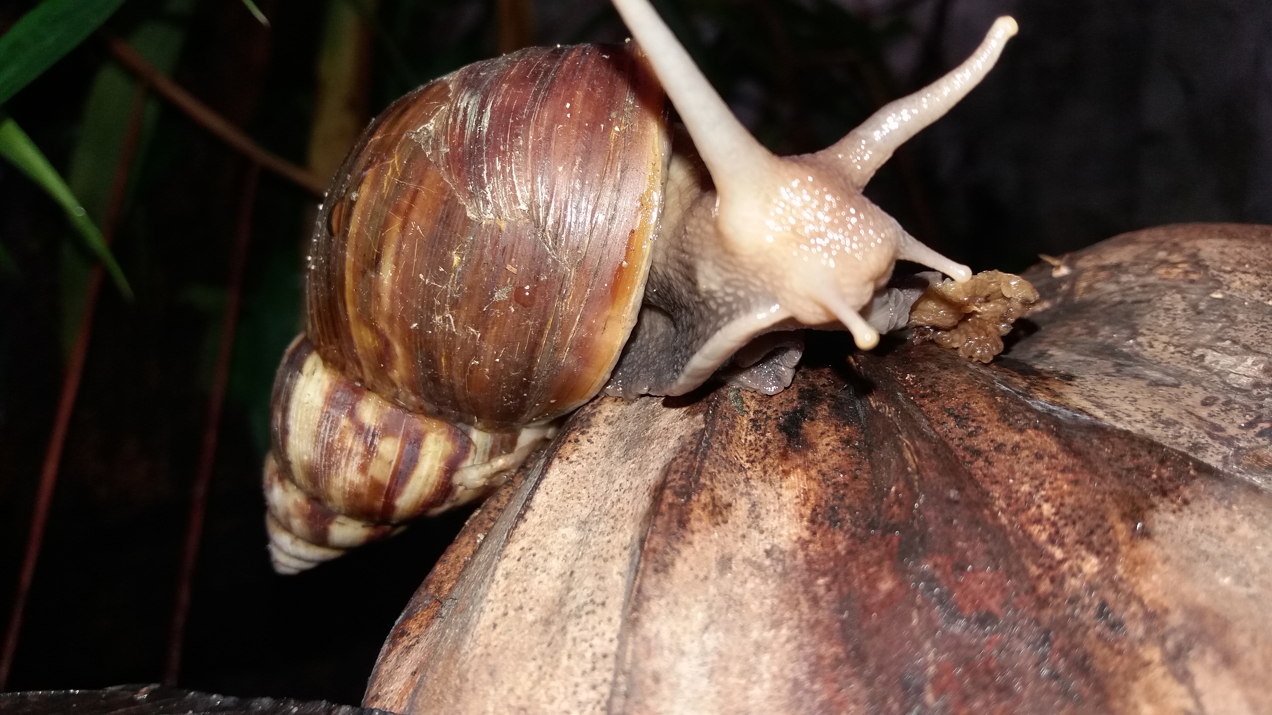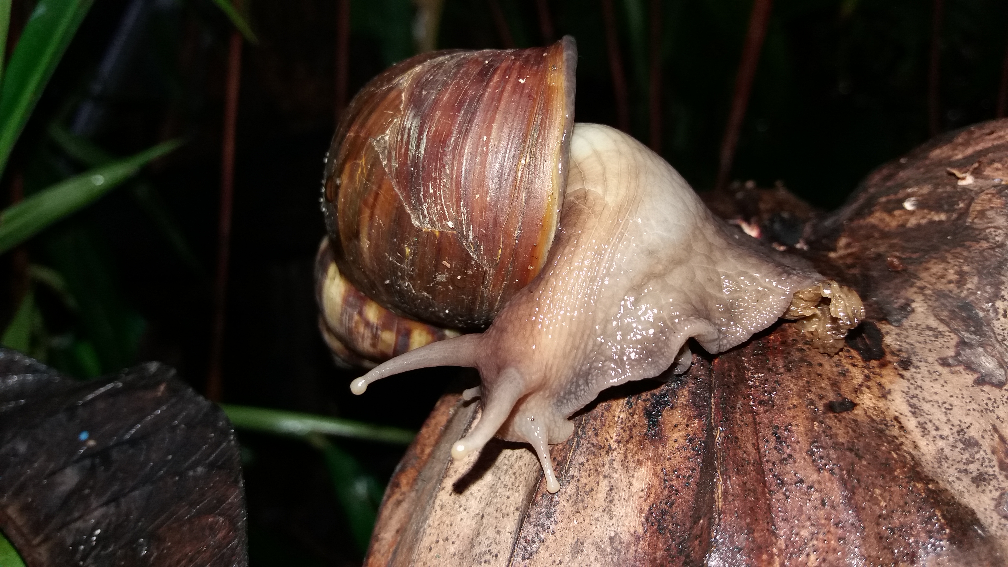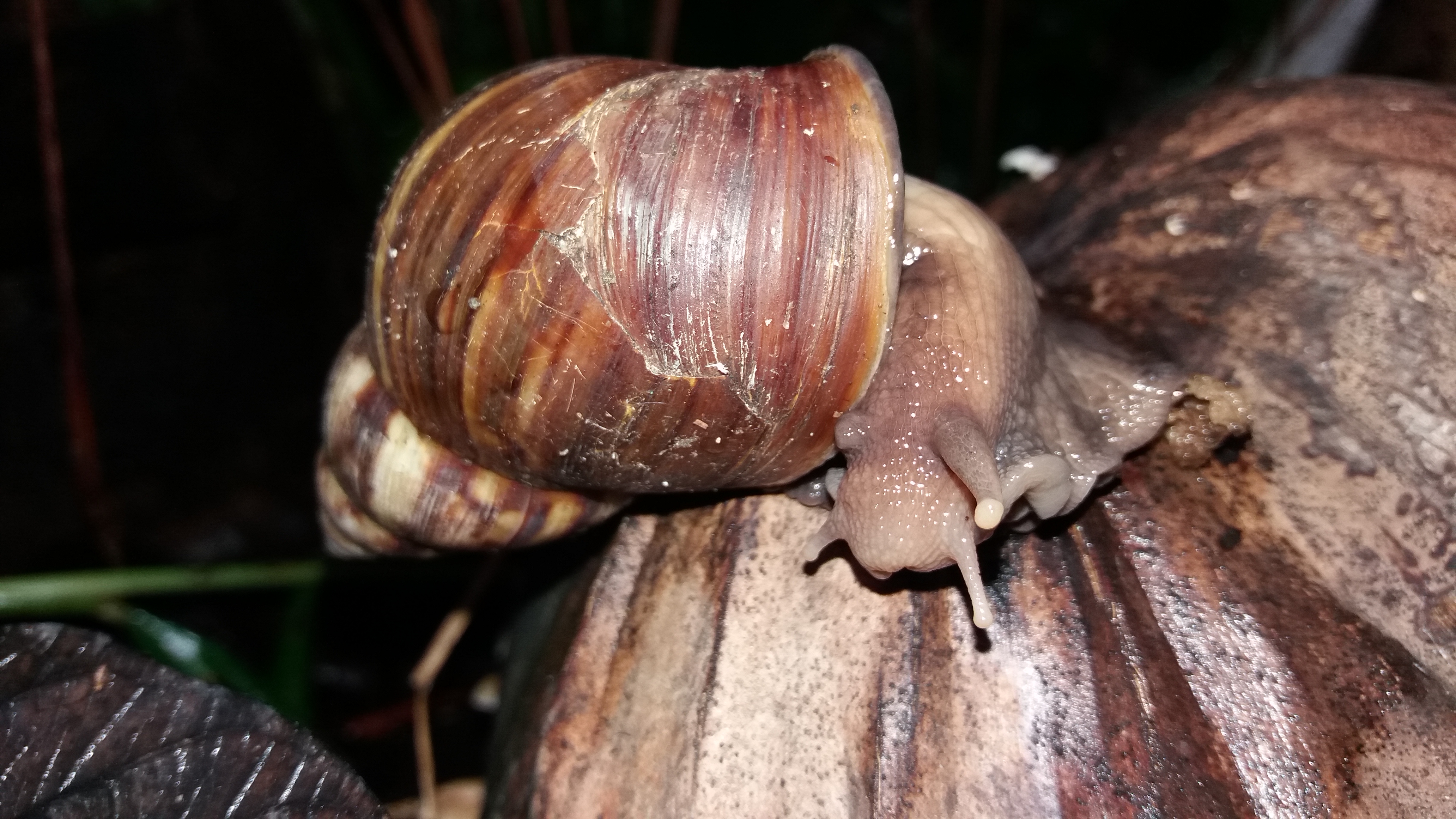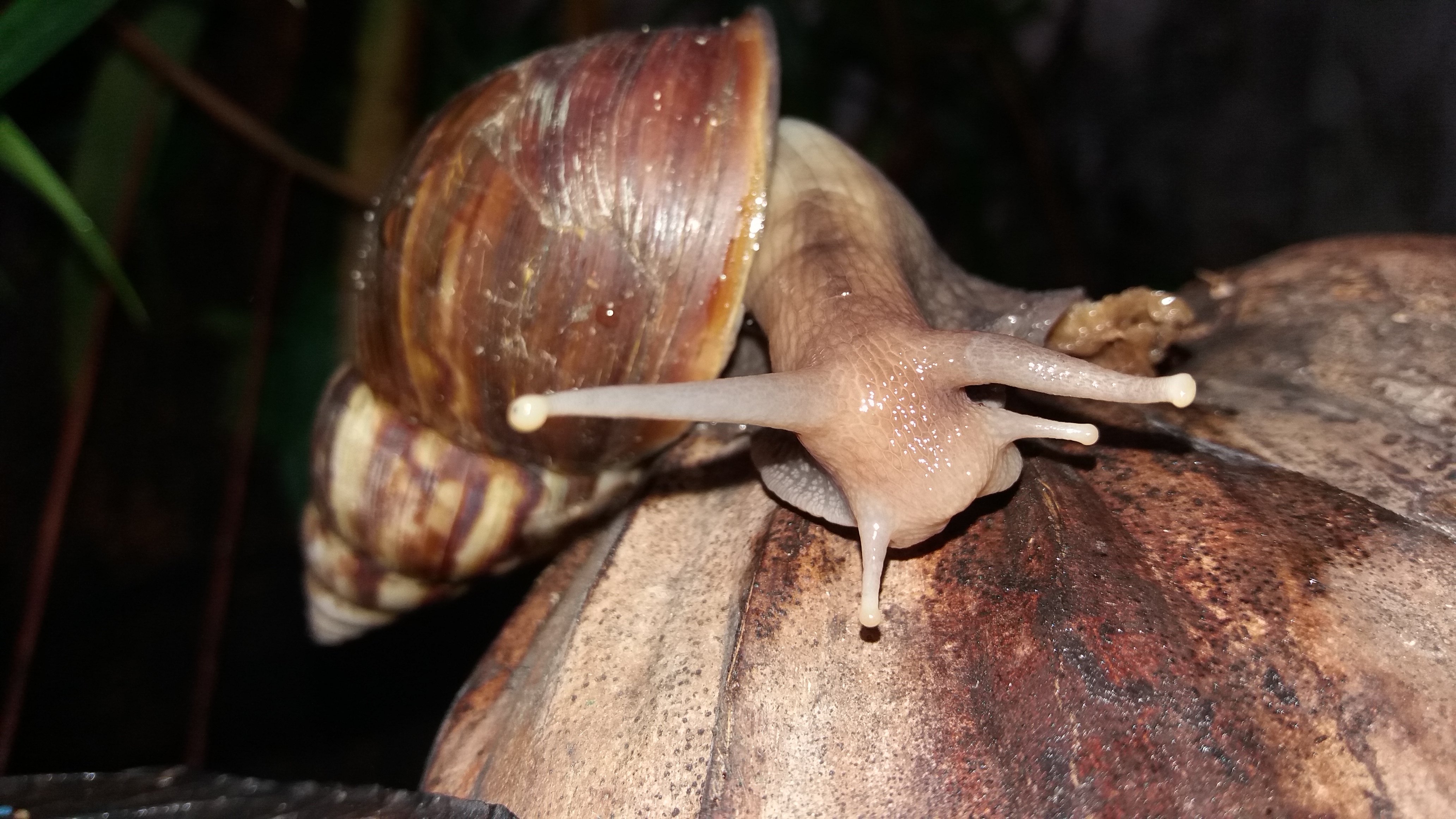 Pada waktu tersebut siput berada diatas kelapa tua yang sudah berwarna coklat sehingga menimbulkan kesan seolah-olah siput bisa melakukan penyamaran yang sangat sempurna seperti iguana,mungkin.