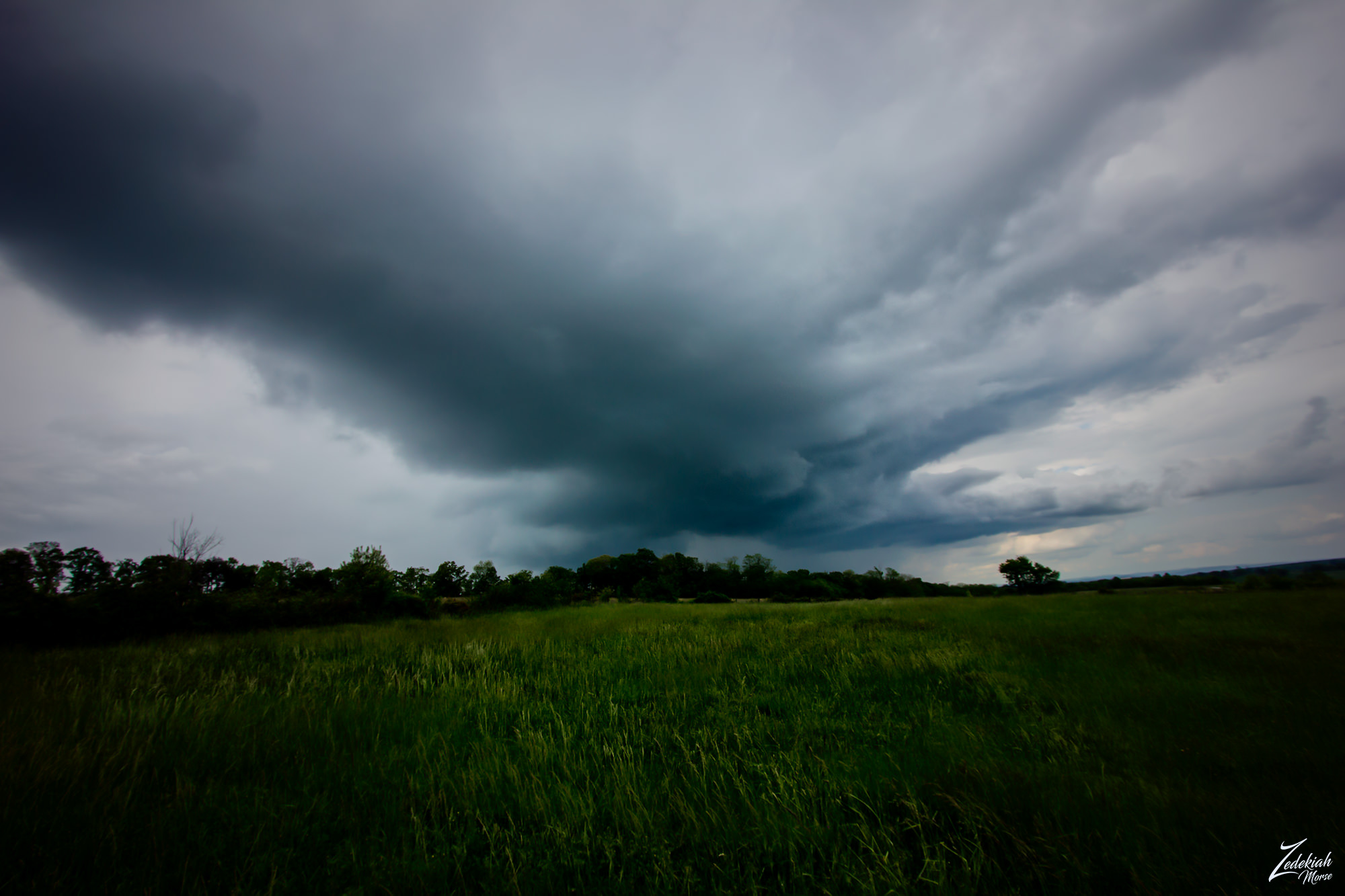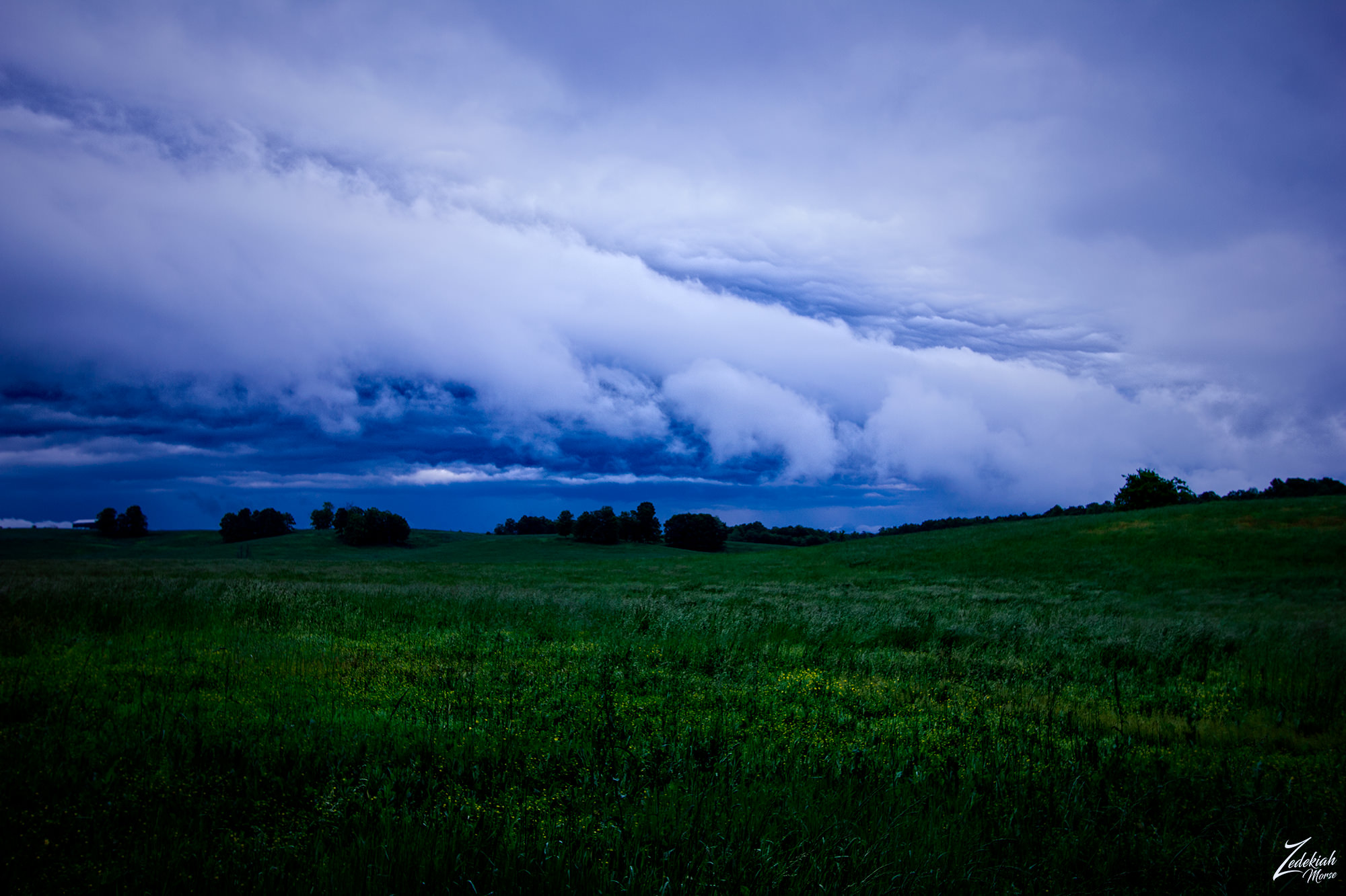 The first sign that a large storm was rolling in was the sudden appearance or formation of a long Arcus Cloud. These are low, horizontal cloud formations that usually push out front as an accessory cloud to a cumulonimbus. In particular this cloud below is a shelf cloud, which is a type of arcus.