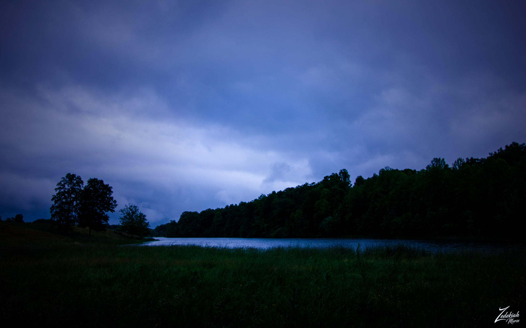 Menacing Front Cresting the Ridge ~ Click to EnlargeI continued on exploring the mountain top. This is a very long mountain, known as Lookout Mountain and this area is about 35 miles south of Chattanooga, Tennessee. As I skirted along the edge of the mountain top forest I came upon this tranquil look pond. I decided this would be a beautiful place to watch the rain come across. I could smell the rain getting closer, there is nothing like the sweet, earthy pungent smell of fresh rain. It strikes a primal nerve deep within us all, a call to nature.