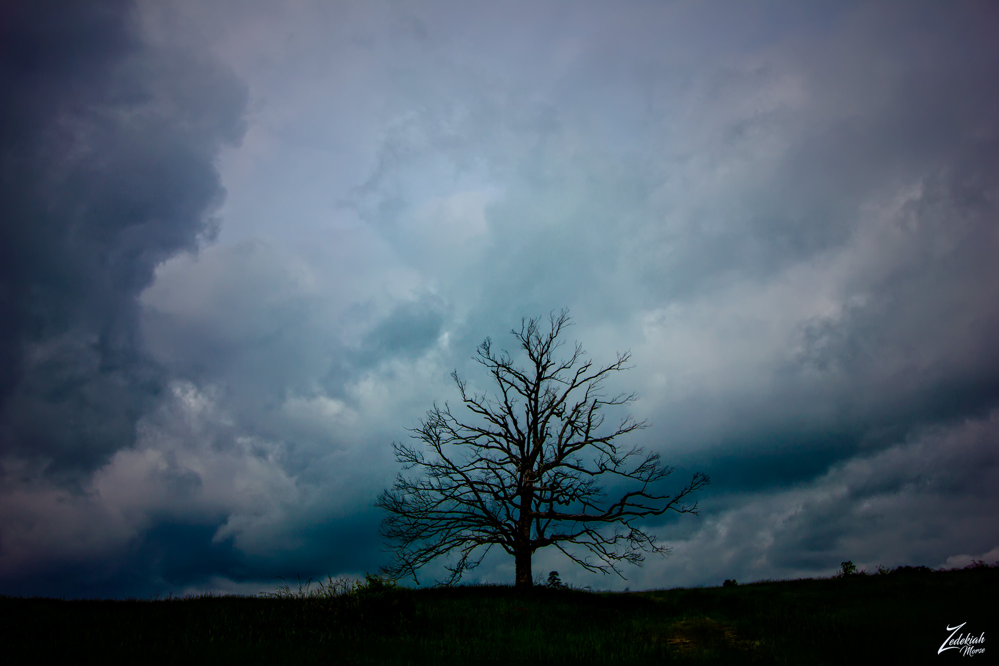 Dead Tree Silhouetted Against Storm Clouds ~ Click to EnlargeYou could see the little rivulets of air being spun by countless rivers of air from the disturbances created from the interaction of the winds impacting against the side of the mountain and then deflecting upward into the thunderstorm clouds.