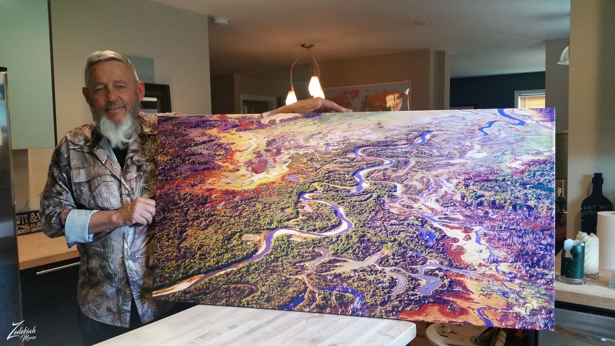 Skewed View of Little Tallahatchie River ~ Click to EnlargeI actually printed a version of this image which my brother has hanging on his wall now. Here is a pic of me holding it up for the camera.
