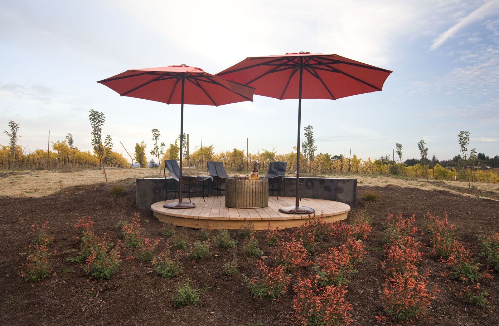 This circular cement feature defines this outdoor seating space and it's only going to look better with time.