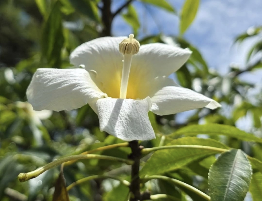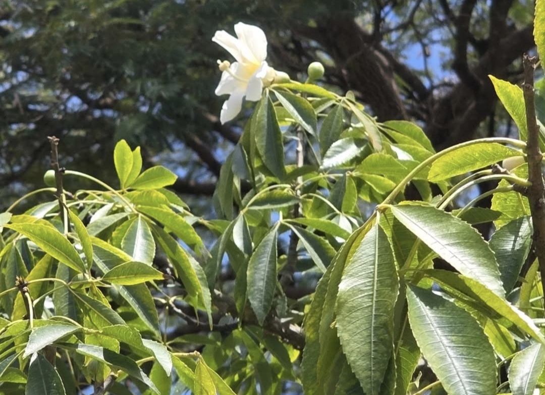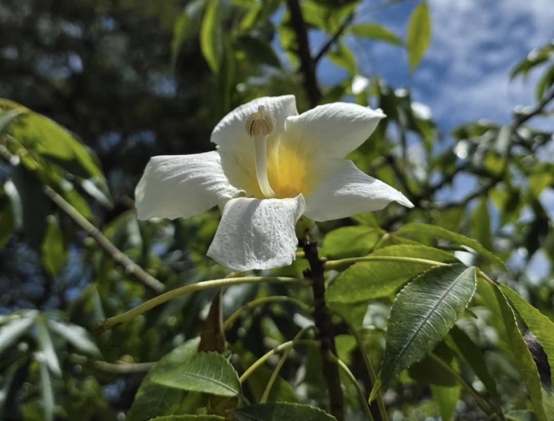 The White Floss Silk flower, from the graceful tree Ceiba speciosa, feels like something borrowed from a dream. When it blooms, the tree transforms into a soft spectacle of pale, silky petals that seem almost too delicate for the world they inhabit. Standing beneath it, one might feel as though fragments of clouds have drifted down and settled quietly among the branches, offering a moment of calm in the midst of everyday life.What makes this flower truly enchanting is its contrast. The tree itself can be strong and imposing, sometimes even armored with thorny bark, yet its blossoms are gentle and inviting. Each flower opens wide, displaying creamy white petals often brushed with subtle hints of pink, surrounding a center that hums softly with life. This balance between strength and softness mirrors the human experience—how resilience and tenderness often coexist within us.