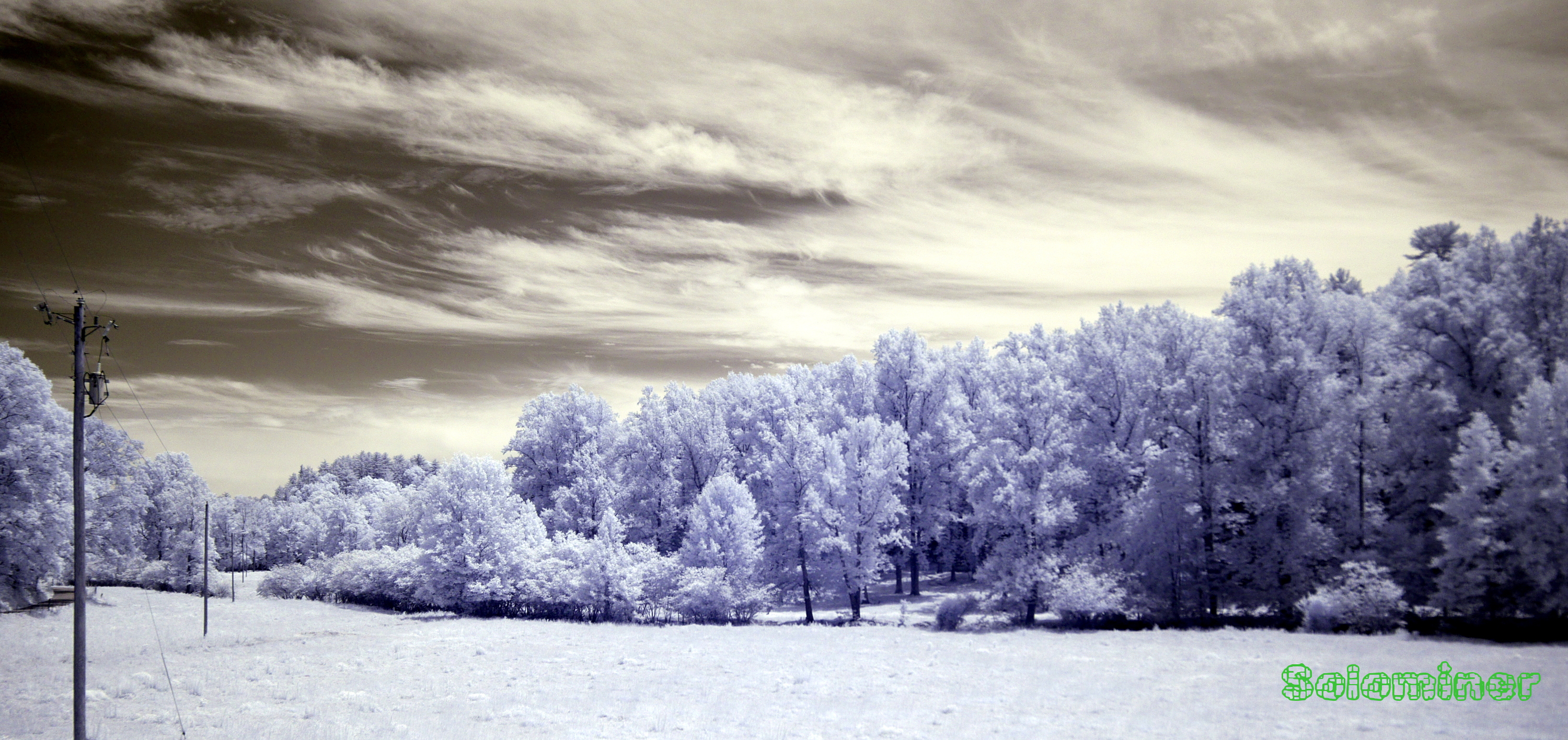 Infrared - Open Skies and Treelinessolominer (72)in #photography • 8 years ago (edited) While driving through country roads I came cross this open field. The clouds couldnt have been in a better place. The sun was shining on the trees giving them a great appearance in infrared. #nature #infrared #outdoors #sky
