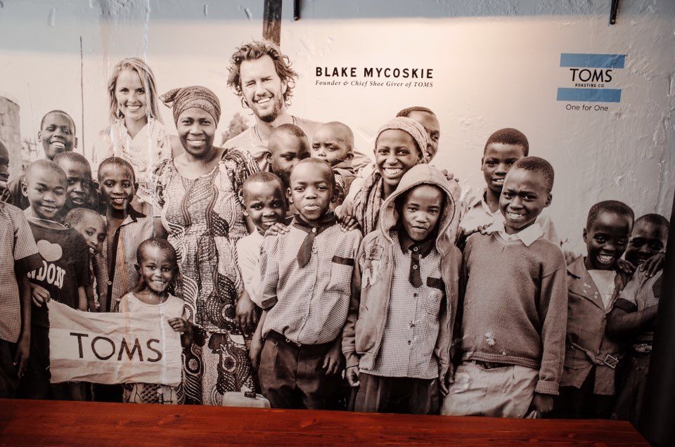 카페의 한쪽 자리에는, 탐스에서 진행 중인 기부 사업들이 소개되어있는데요. 가장 인상깊었던 부분이에요!
