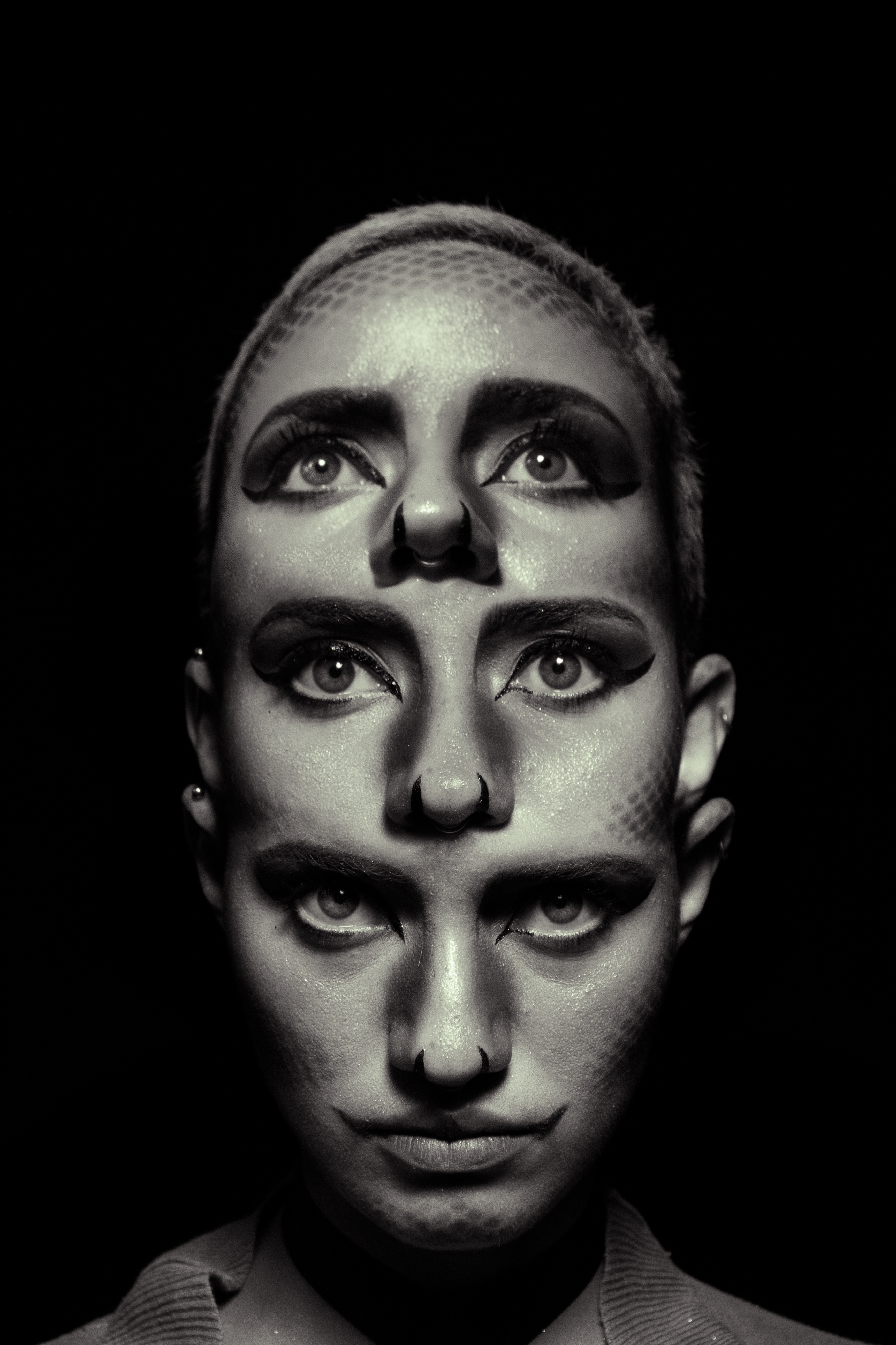 Euríale es la segunda hija y al igual que Esteno poseía una apariencia monstruosa, ambas compartían a su vez la cualidad de ser inmortales. Euríale era la más piadosa de las tres siendo la única con sentimientos “maternos” pues fue ella la que lloró desconsoladamente cuando Medusa es decapitada por Perseo. En esta segunda imagen podemos apreciar a una misma criatura con tres expresiones diferentes, que para mí, representa la unificación de estas tres hermanas.