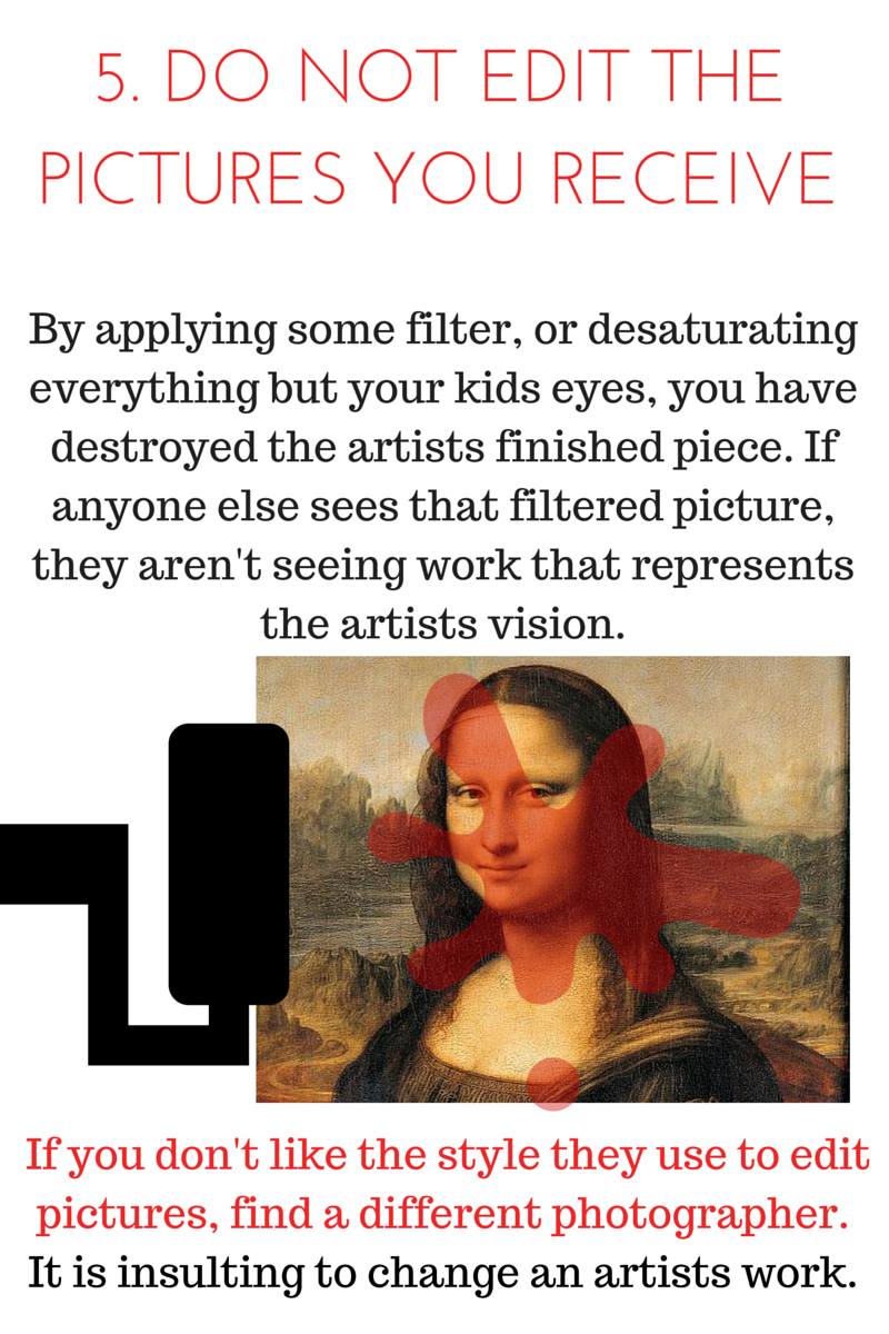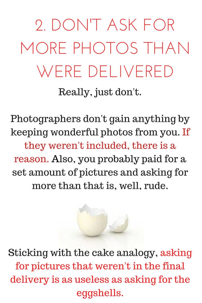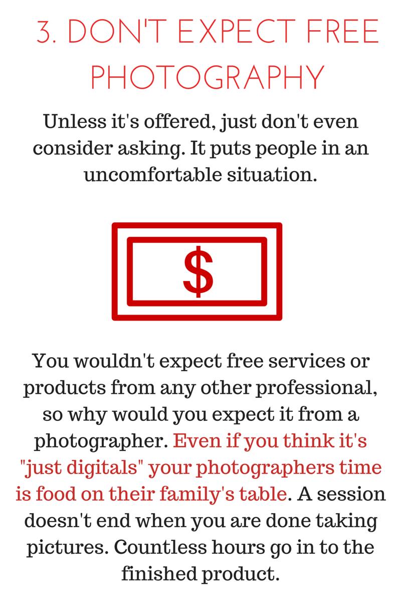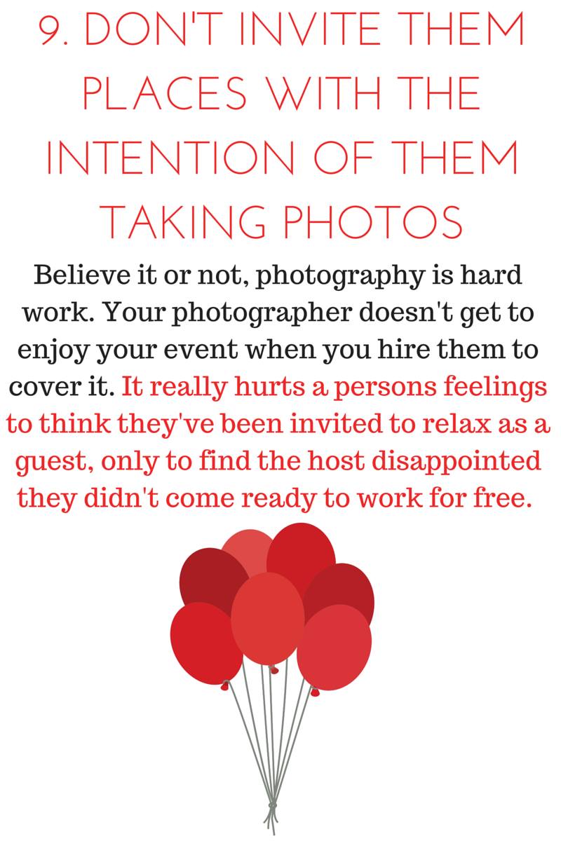 So here are 10 ways to respect – whatever your definition of respect is – your photographer who may also be your friend. With courtesy of an agency-colleague of mine.