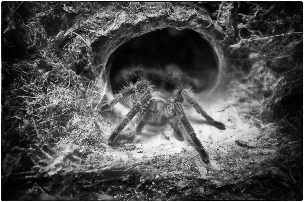 The more contrast in a scene, the better it usually looks when converted into black and white. Even a simple photo of a spider at the zoo when processed properly can produce quite appealing results.