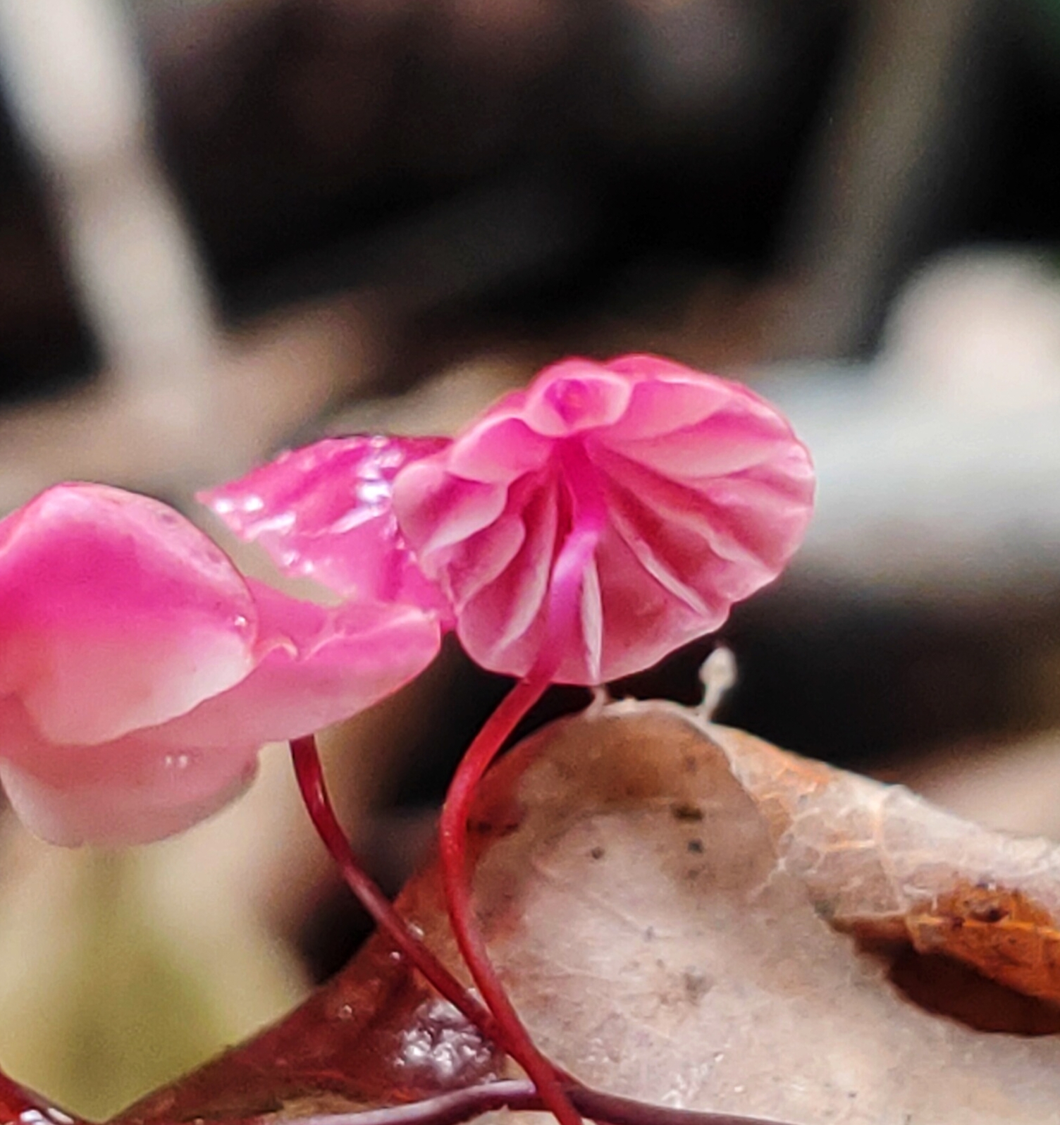 Today I took some photos of mushrooms in the garden, these are very beautiful and charming mushrooms with their nice colors. I saw fungus growing on dry leaves, at first I thought this was plastic embedded in the ground, but after I looked more clearly it was fungus.