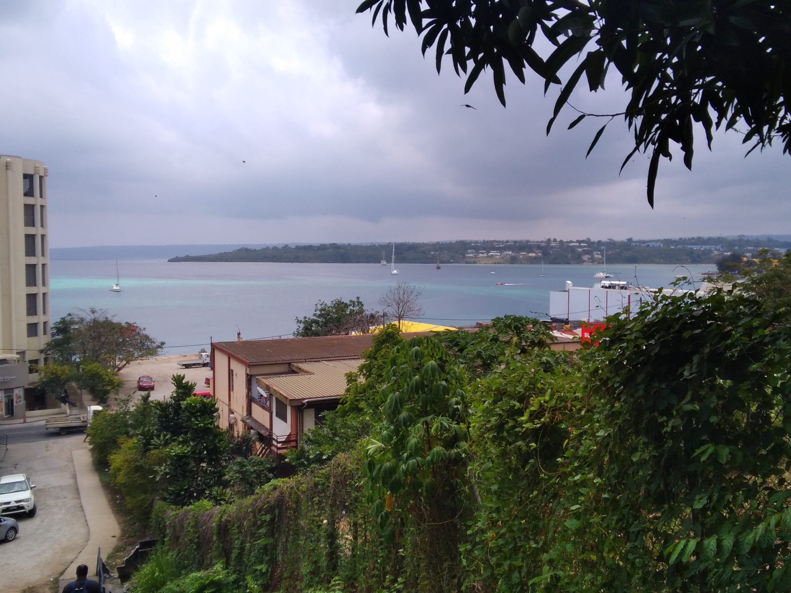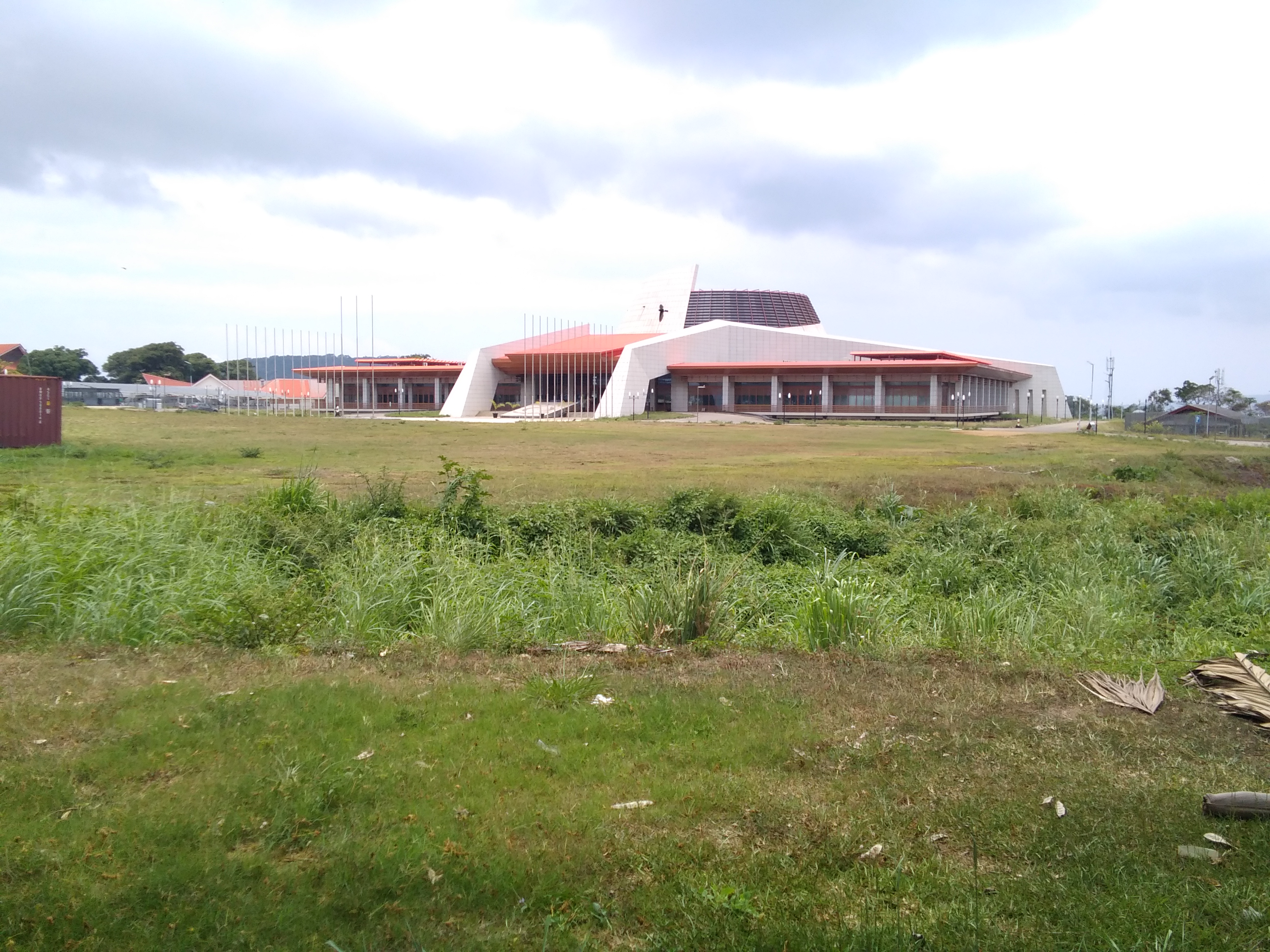 I wandered down the road and made my way down the hill from the neighborhood my hotel was located on towards the worf and the main road in town. Along the way I passed by the island nations convention center, stopping to get a quick shot of the architecturaly strange shaped building. Turned out the building had just been purchased by chinese developers and was in the process of being turned into a restaurant or something similar.