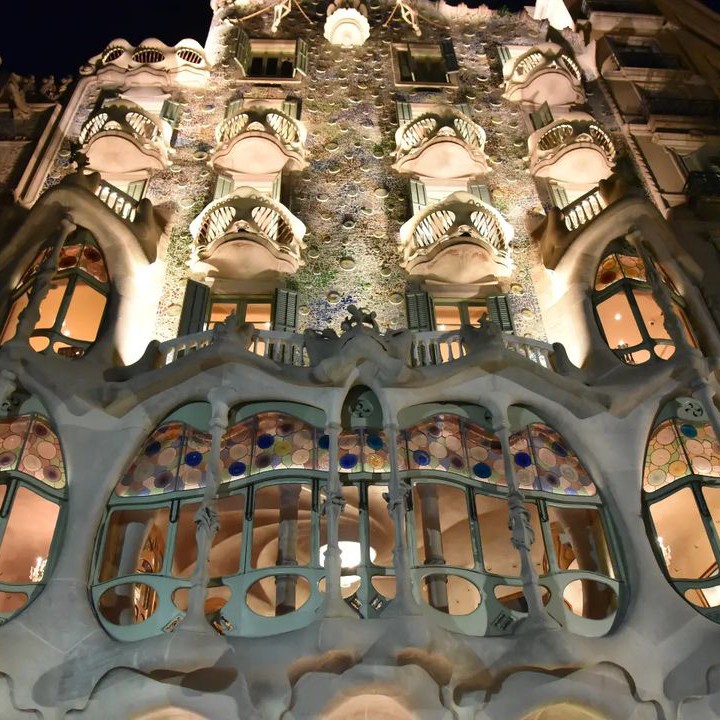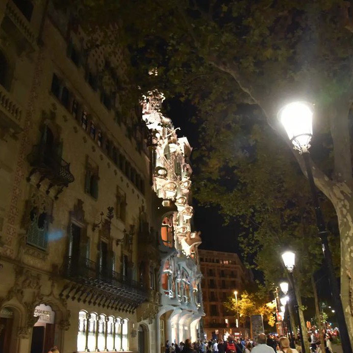 maybe that is why I love this place called Casa Batlló ,this is the current mood of the casa batillo this night...it looks amazing.